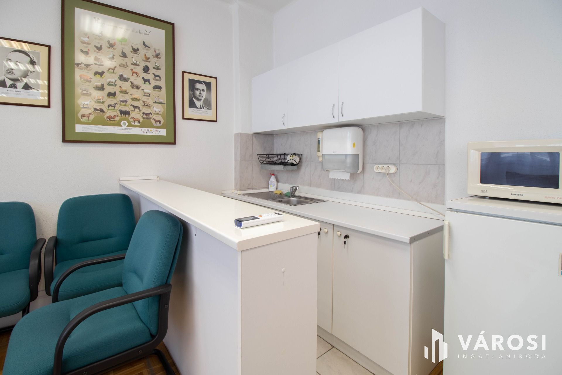 Az önálló folyosón található egy saját, PRAKTIKUS KONYHASAROK, mosdóhasználatra szintén az irodaegyüttes szintjén van lehetőség.