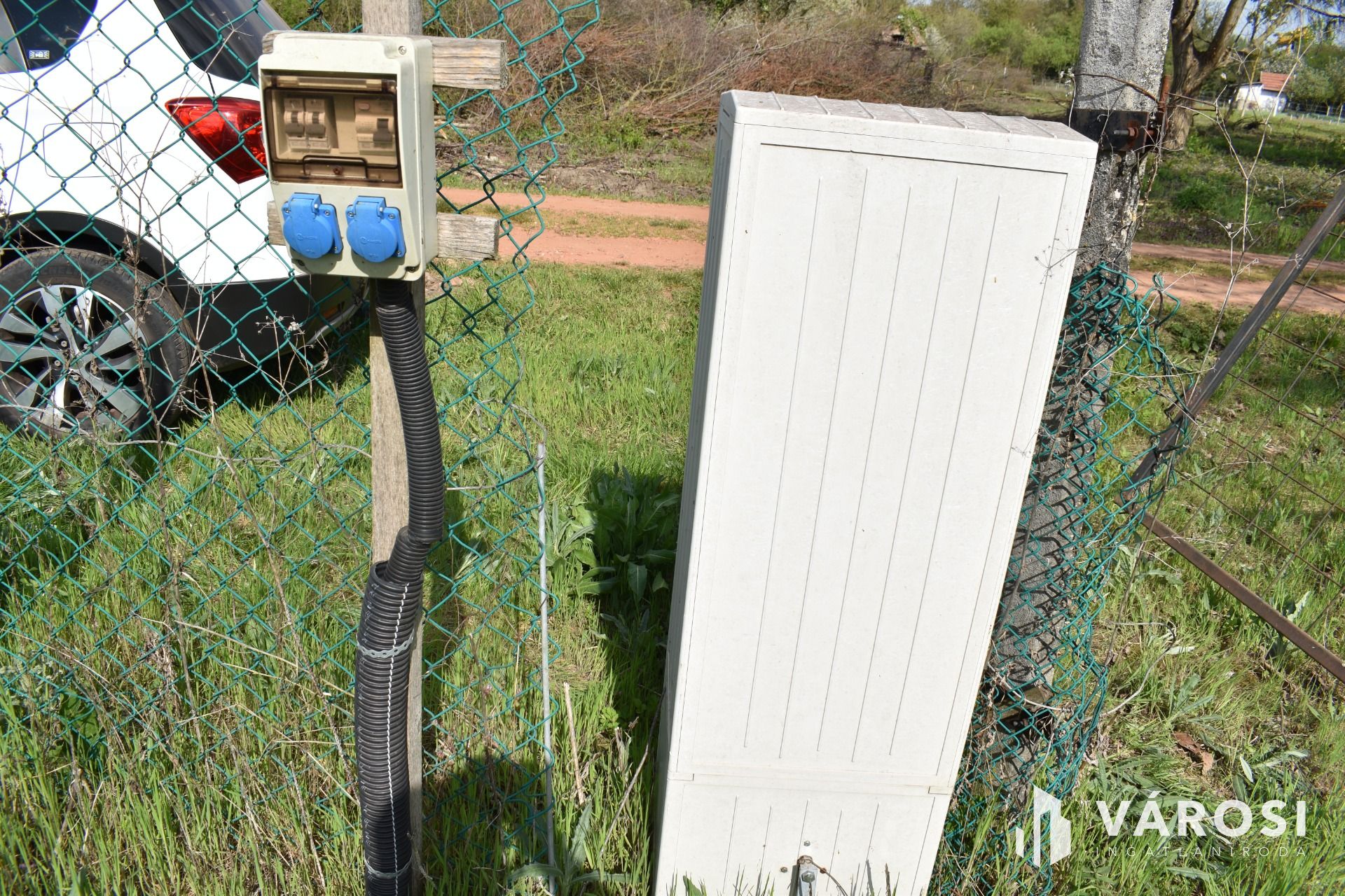 A terület teljesen körbe van kerítve, azon egy fúrt kút és egy tégla falazatú gazdasági épület található. Az áram bekötése is megtörtént, saját villanyórával rendelkezik.
