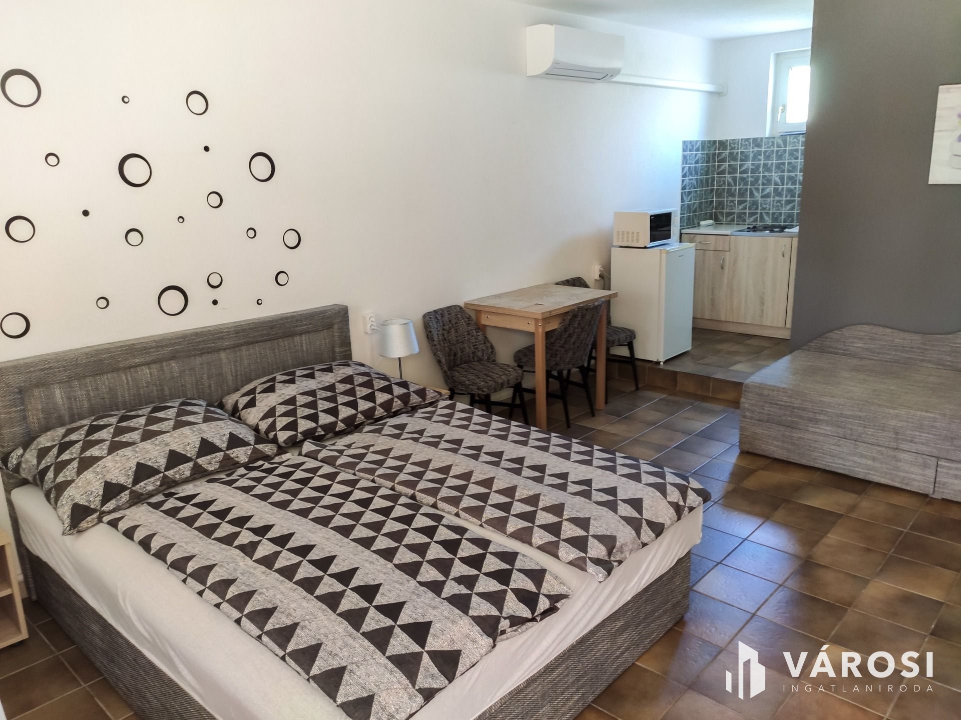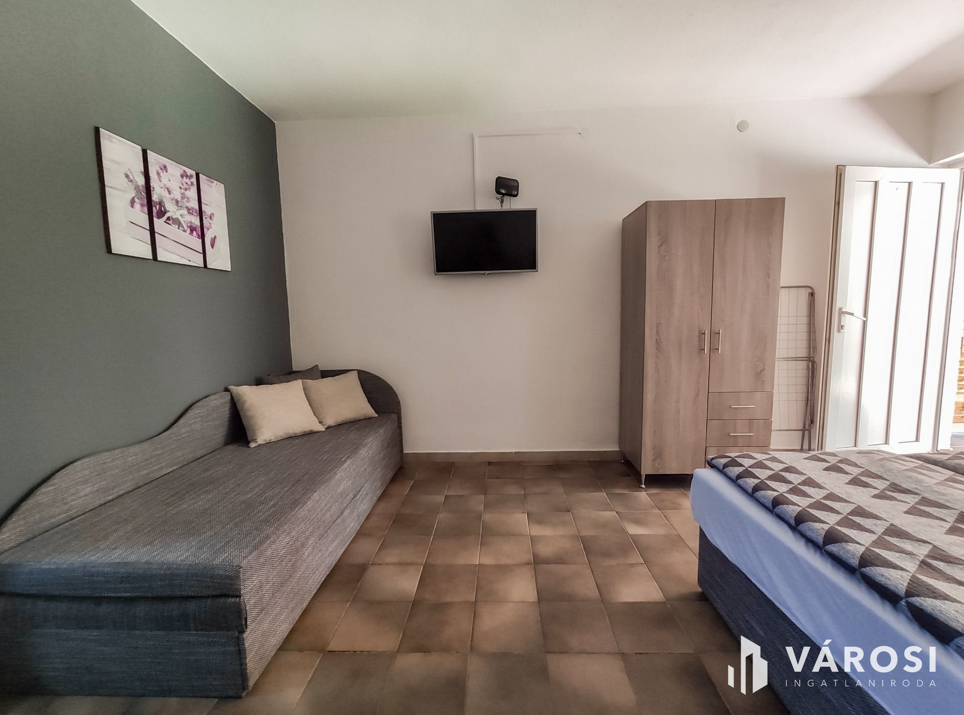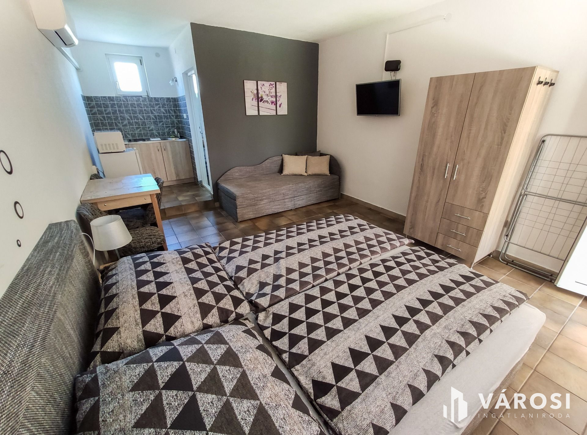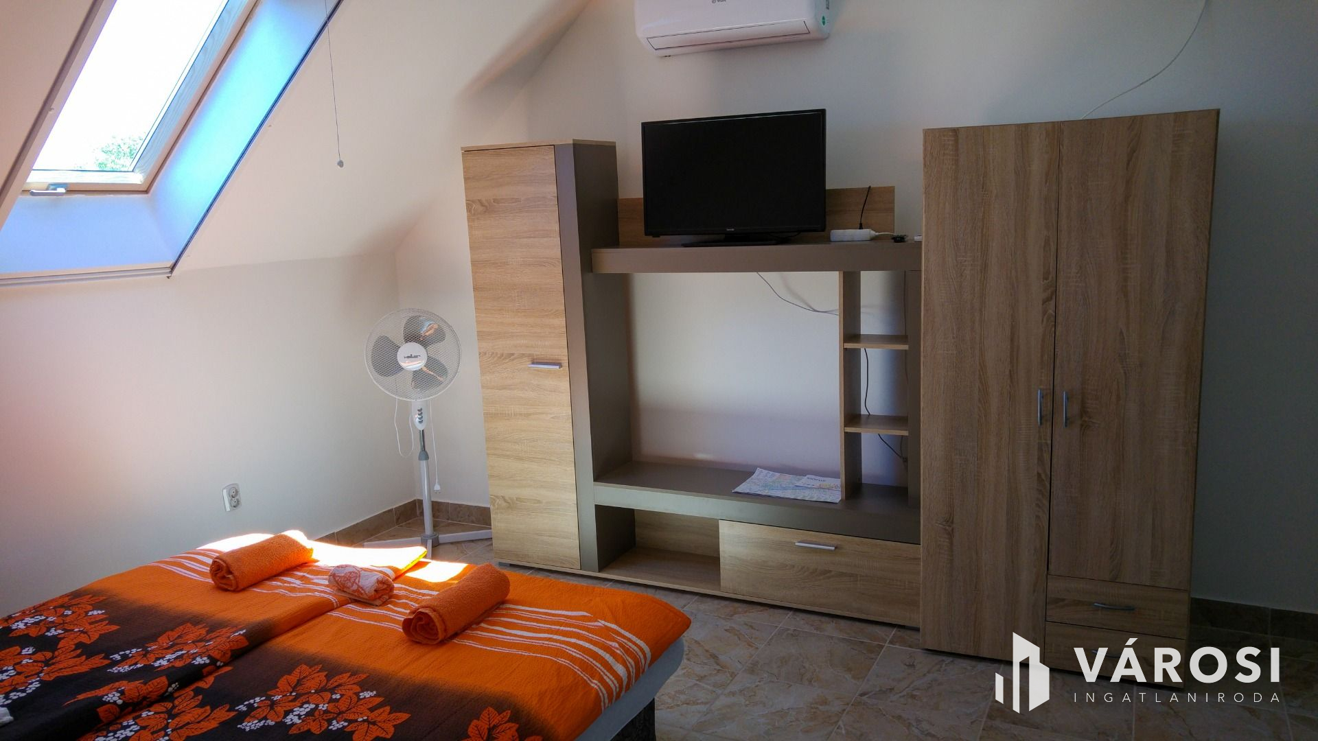 Siófok kertvárosi részében eladó egy 15 apartmanból álló apartmanház! Precízen átgondolt, rendkívül praktikusan megtervezett, bruttó 500 m2-es házról van szó. Ellentétben a legtöbb hasonló balatoni ingatlannal ez az épület kifejezetten kiadásra épült, nem utólagos átalakítások eredménye. Ennek megfelelően mind a 15 apartmanjához saját felszerelt konyha és fürdőszoba tartozik. Mindegyik külön bejáratú. Az összes lakóegységnek hűtő-fűtő hőszivattyús klímával van megoldva a hűtése és a fűtése. A "H" tarifás mérőóra fel van szerelve az ingatlanra, így a fűtése rendkívül gazdaságos. A használati meleg vizet gázbojler biztosítja.