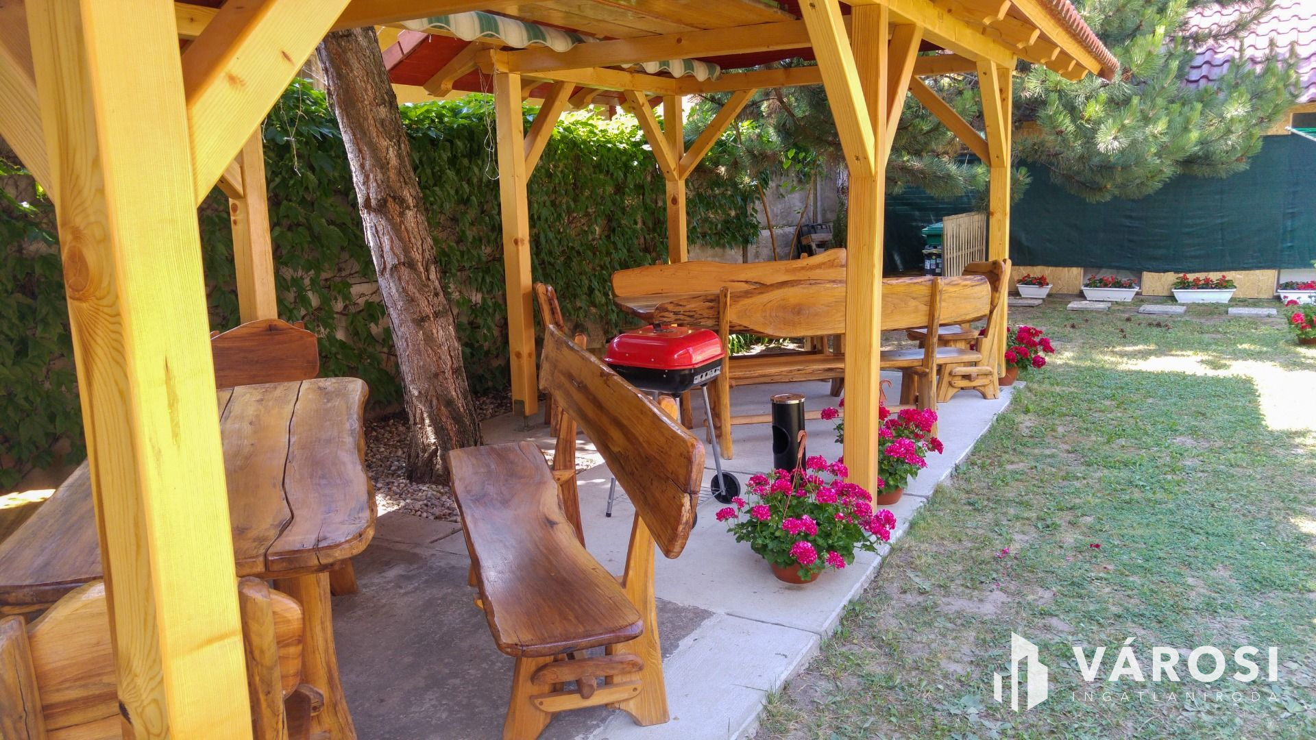 A telek 980 m2-es. Az udvarban kialakításra került egy mosókonyha, amely 2 mosógéppel, 2 szárítógéppel és 1 mosogatógéppel van felszerelve, hogy az apartmanházhoz kapcsolódó összes mosási, szárítási és mosogatási feladatokat helyben el lehessen végezni. A kertben ping-pong asztal, hinták, valamint egy 50 m2-es épített szaletli található.