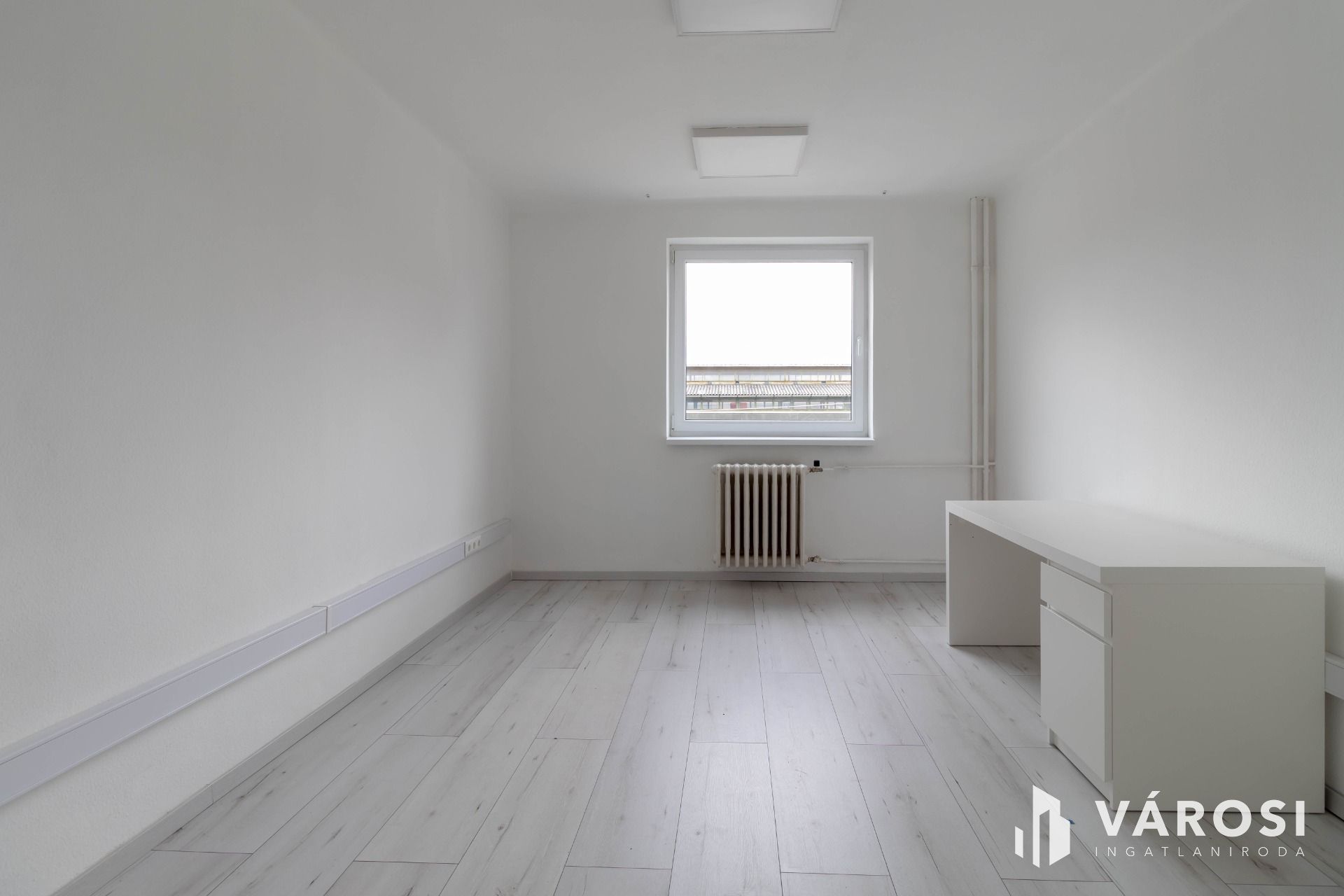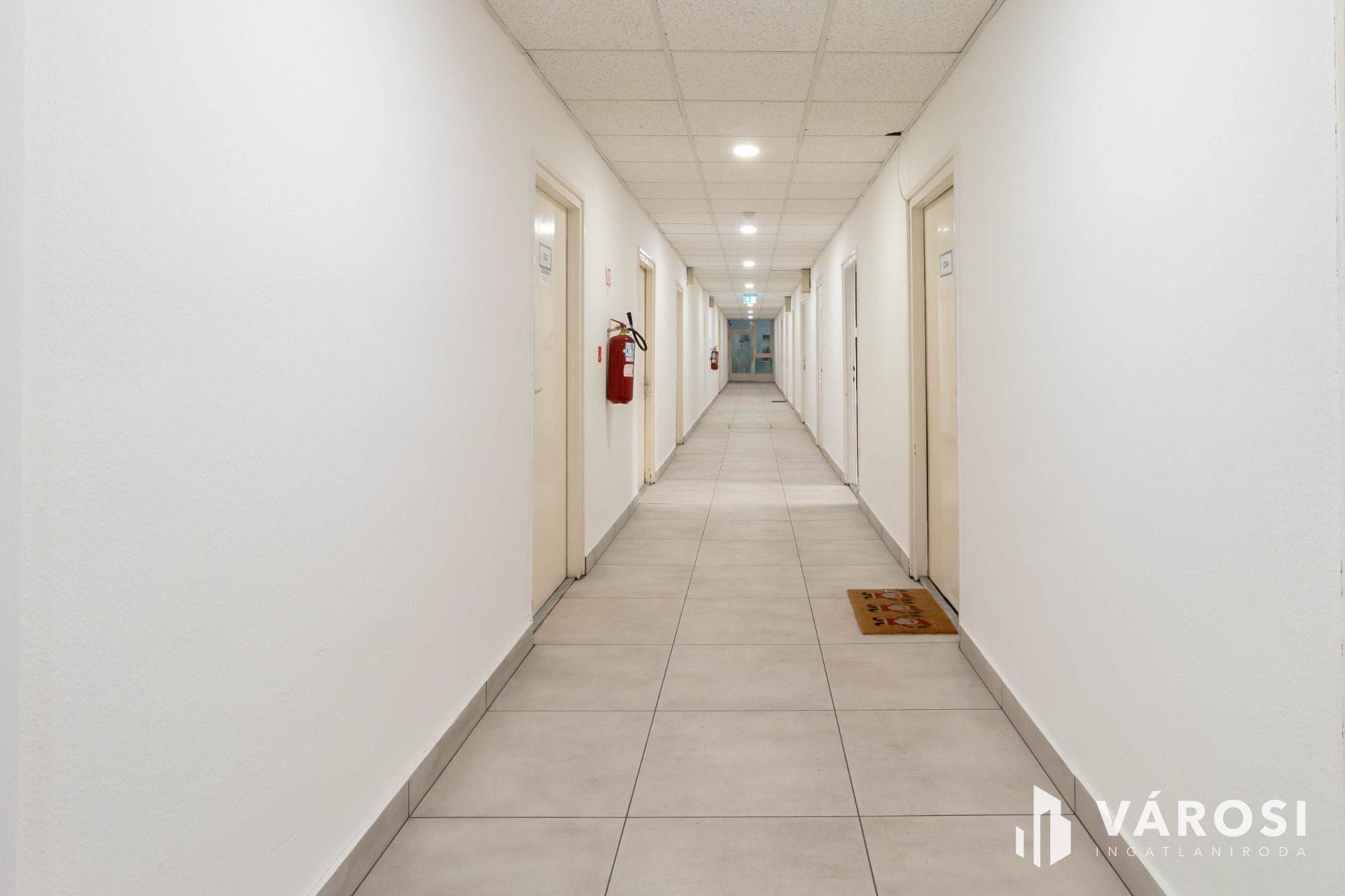 A 16 m2-es iroda az irodaház 1. emeletén helyezkedik el. A helyiség laminált padlóval burkolt.