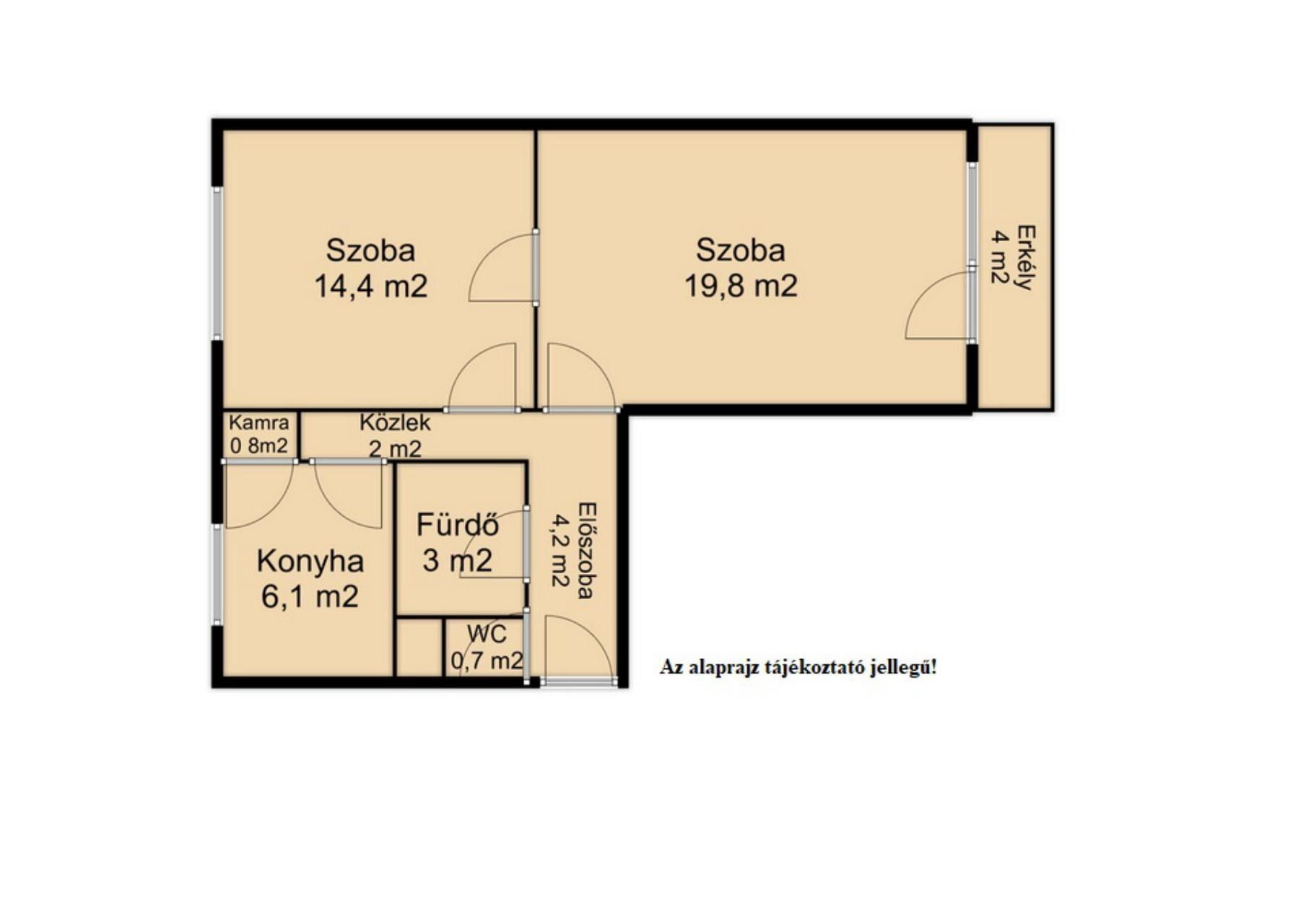 Az ingatlan elosztása: 2 szoba külön nyíló bejárattal, konyha, fürdőszoba, külön WC, illetve egy erkély.