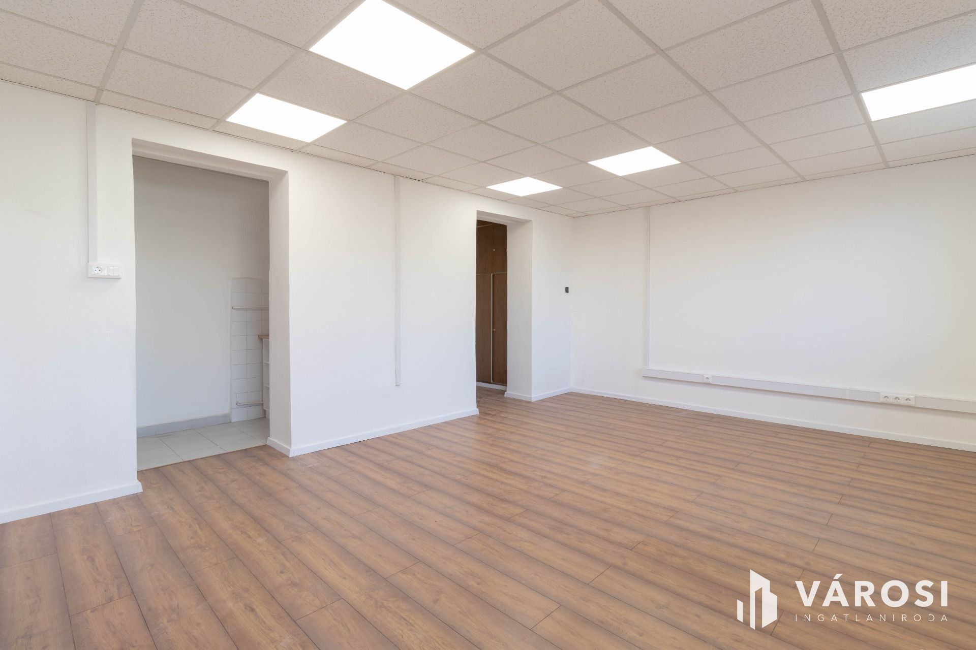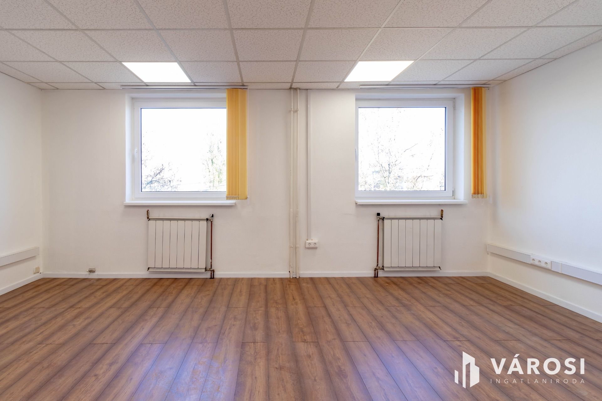 A két egymásból nyíló helyiségből álló iroda az irodaház 2. emeletén helyezkedik el. A helyiségek laminált padlóval burkoltak.