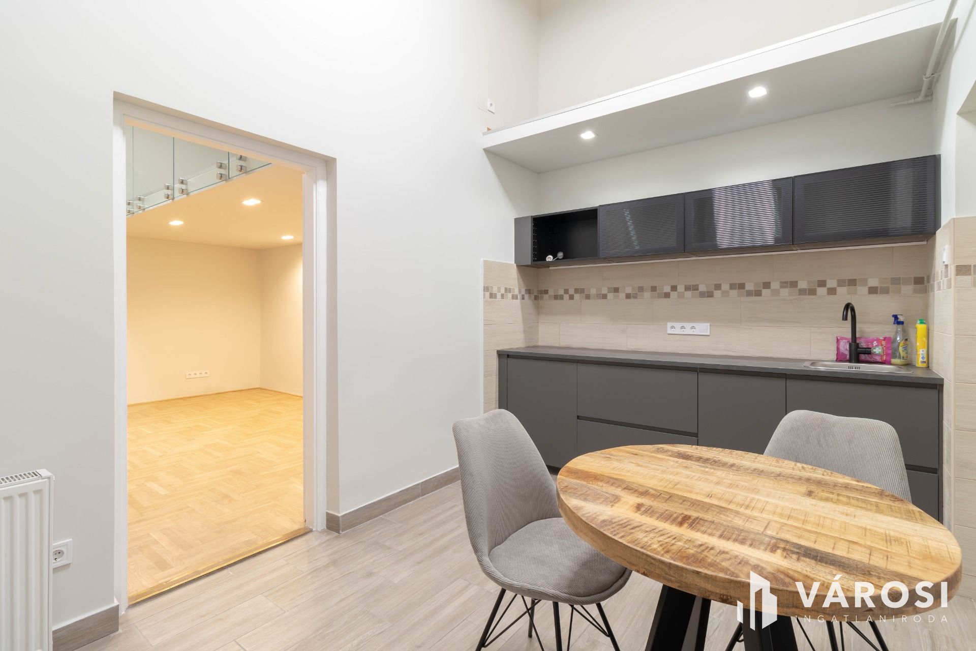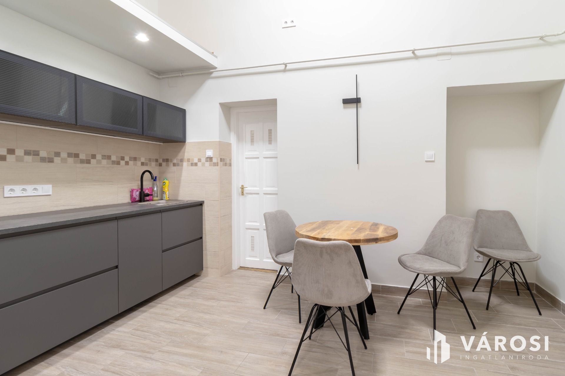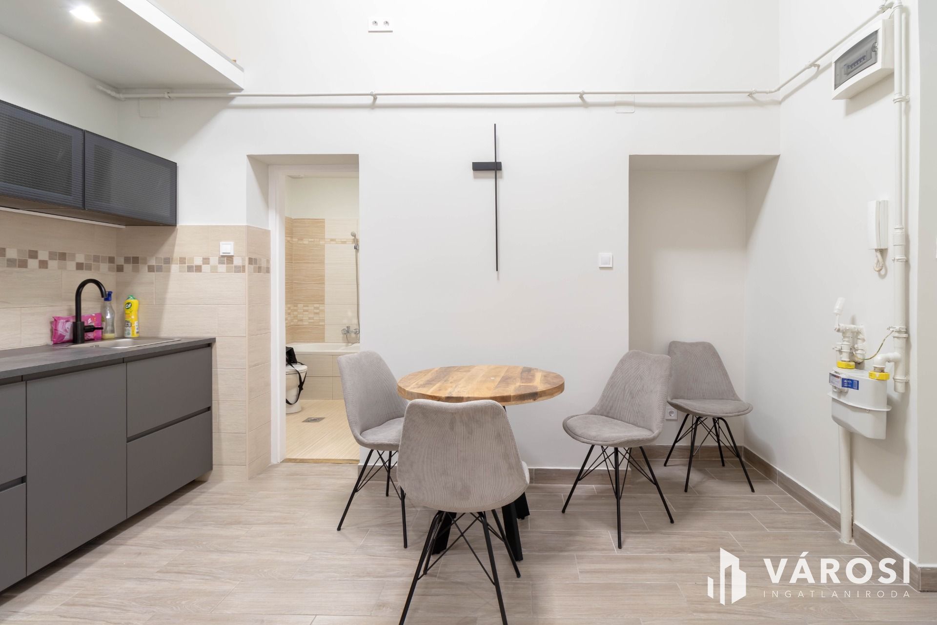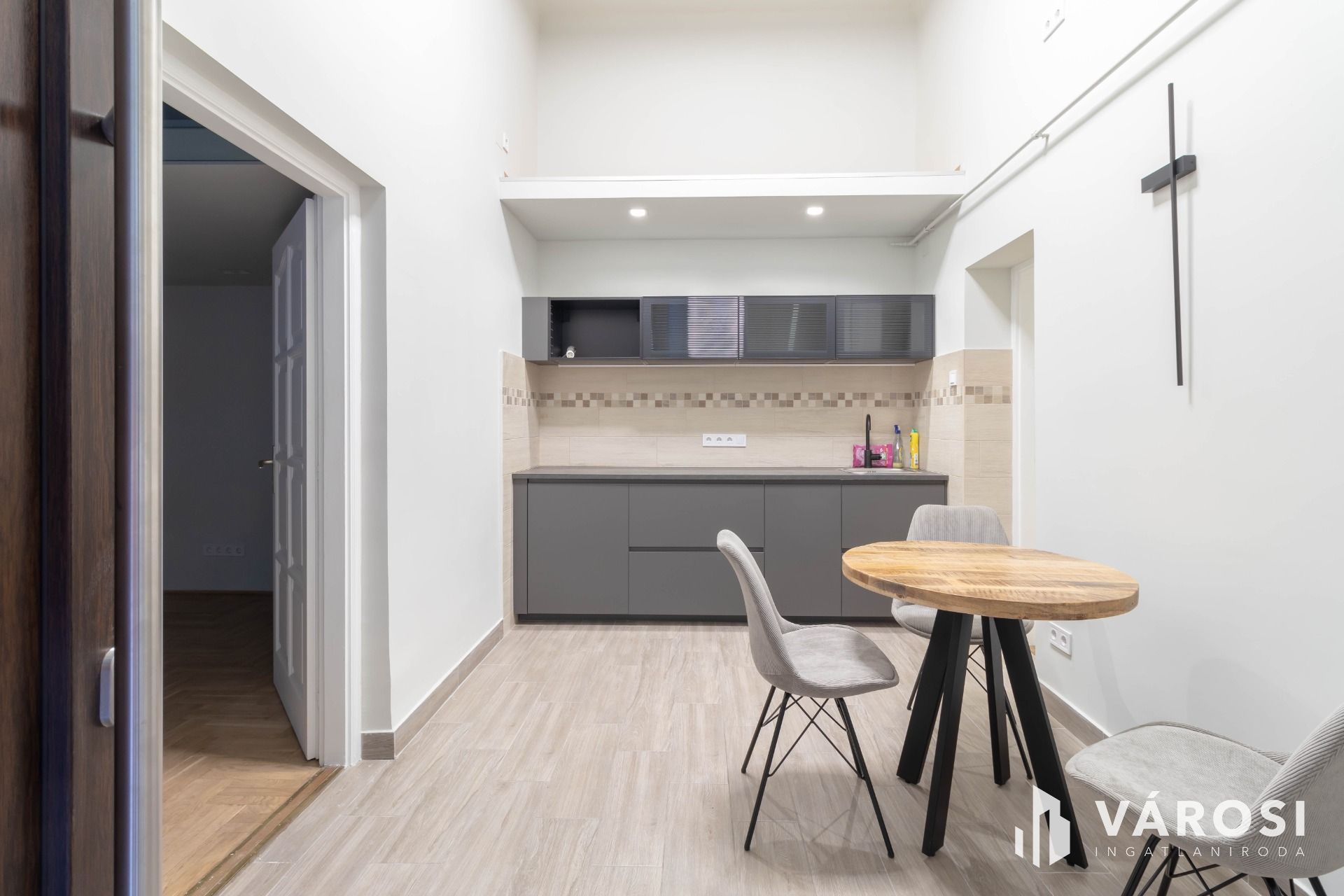 The floor area of the property is 36 m2, but the 20 m2 room, thanks to the high ceiling, also has a 10 m2, elegant-looking standing gallery, which increases the usable space and provides the opportunity to create a bedroom separate from the living room.