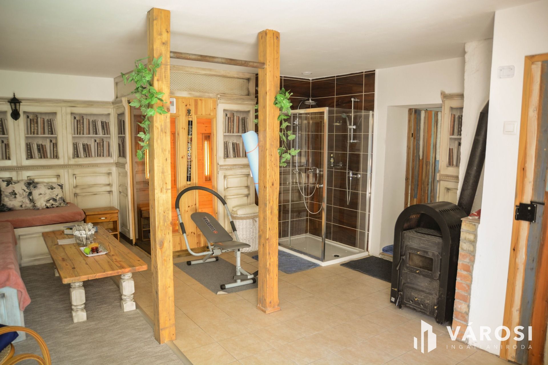 The house is for sale fully furnished, and comfort is enhanced by a built-in fireplace that provides cozy warmth on cold winter days. Central gas heating is also available, as well as electric heating panels. Thanks to its brick and thick stone walls, the house maintains a pleasant temperature in summer as well. For relaxation and unwinding, a private sauna is available, where you can let go of everyday stress.