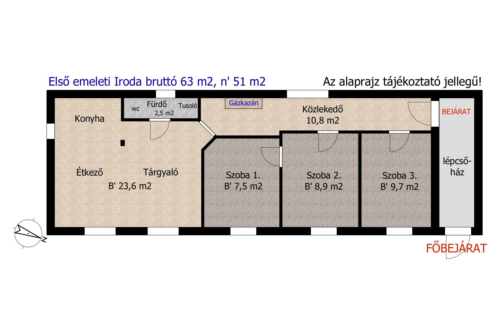 A tulajdoni lap szerint 51 m2, mely Iroda megnevezésű, ezért Otthon Start hitellel nem vásárolható meg!