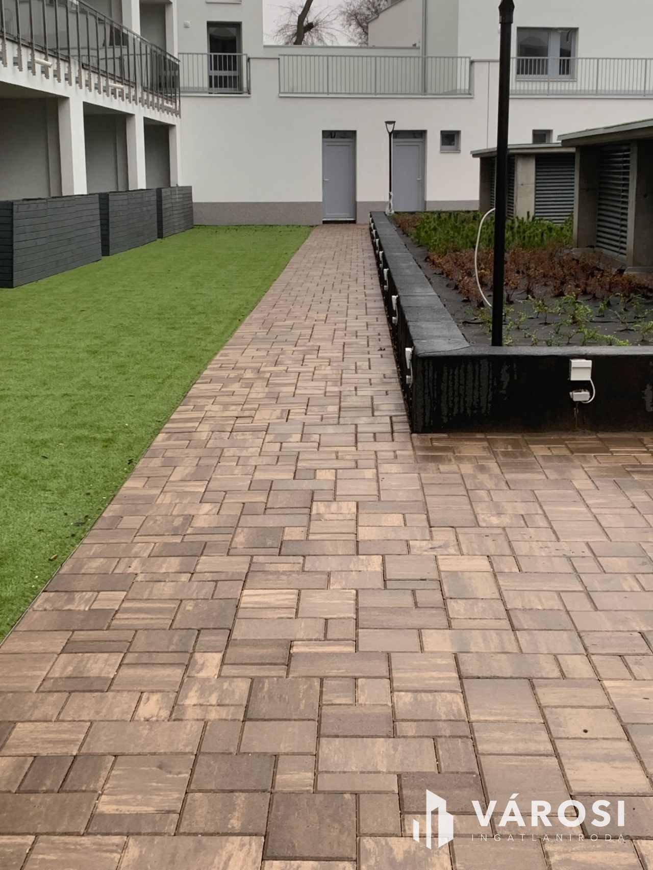 A lakáshoz tartozik egy parkosított udvar, mely zöld övezeti környezetben kínál nyugodt kikapcsolódási lehetőséget. A terasz még több lehetőséget nyújt a relaxálásra és a természet közelségének élvezetére. Az esti hangulatvilágítást a kertvilágítás teszi teljessé.