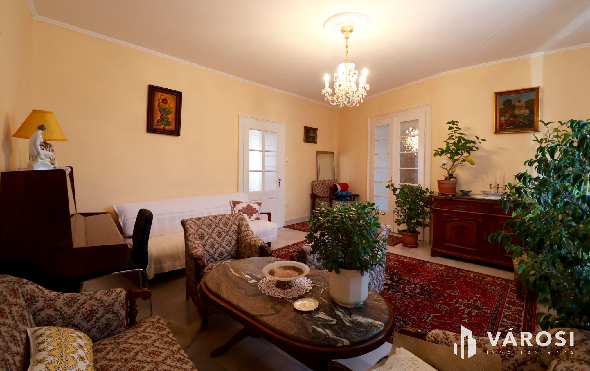 Eladó ~142,00 m2 alapterületű, vegyes falazatú családi ház a belvárosban. Az épület 1960-as évek elején épült, elegáns nagy terekkel, szép belső ajtókkal. 2000-ben a korszerűsítés során kicserélték a padlóburkolatokat, és a villamos hálózatot. 2015-ben új külső nyílászárók és új fűtőtestek kerültek beépítésre, álmennyezet került minden helyiségbe.