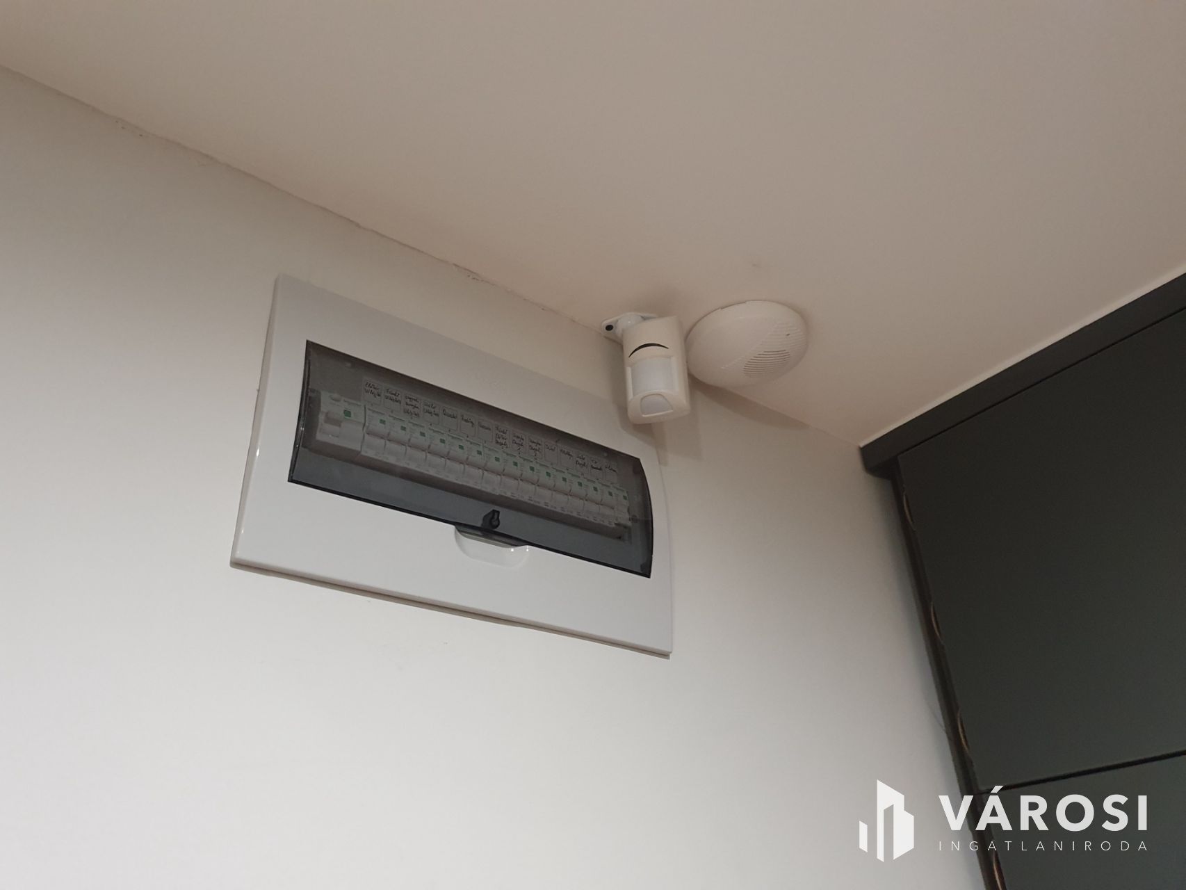 A folyosón és a szobákban magas kopásálló laminált padló és spanyol design járólap található. Beltéri ajtók fényezett egyedi MDF ajtók. A konyhai részen egyedileg gyártott modern, fényezett antracit konyhabútor, nyomógombos beépített szekrények teljesítenek szolgálatot. A konyha felszereltsége: A++ Hűtőszekrény, fagyasztó, sütő, főzőlap, pára elszívó, mosó-szárító gép, mosogató gép. Blanco gránit mosogató tálca, csaptelep, mosószer adagoló.