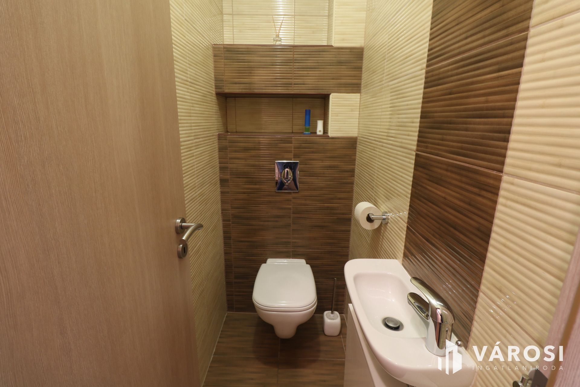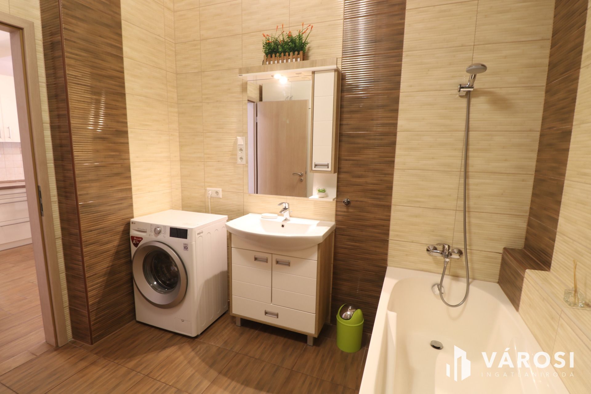 - Modern szaniterek, csaptelepek, burkolatok lettek beépítve a lakásba.