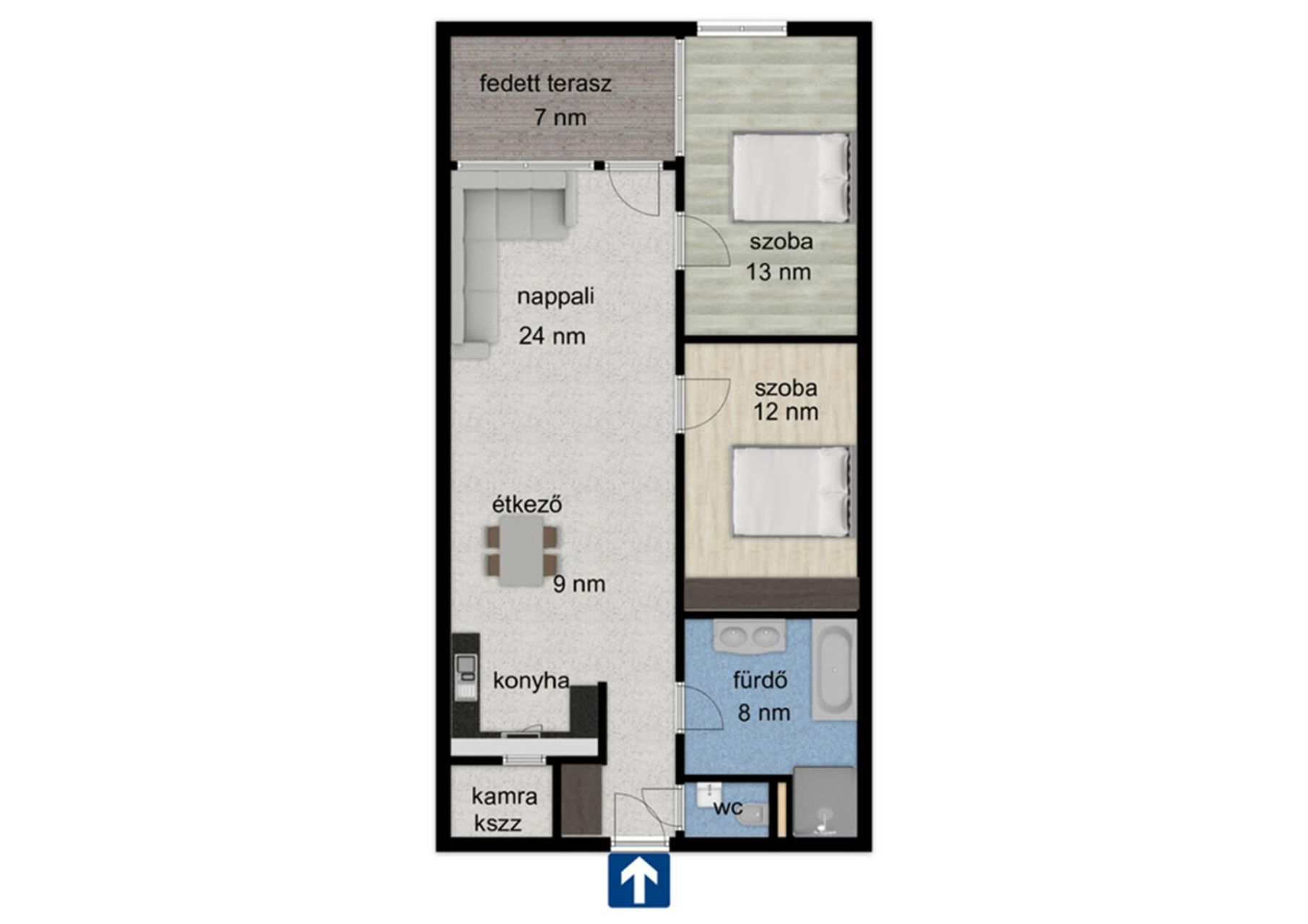 - 75,66 nm-es hasznos alapterület.