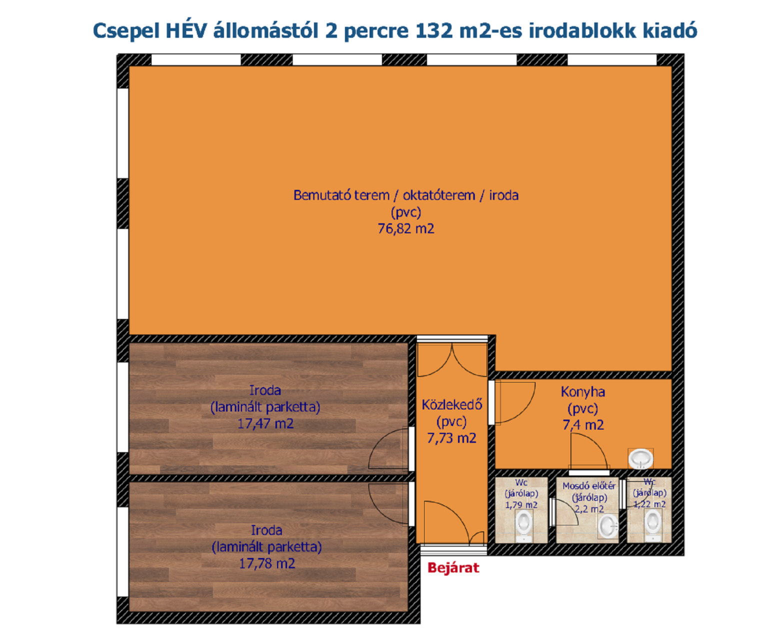 Csepel HÉV állomástól 2 percre 132 m2-es irodablokk kiadó
