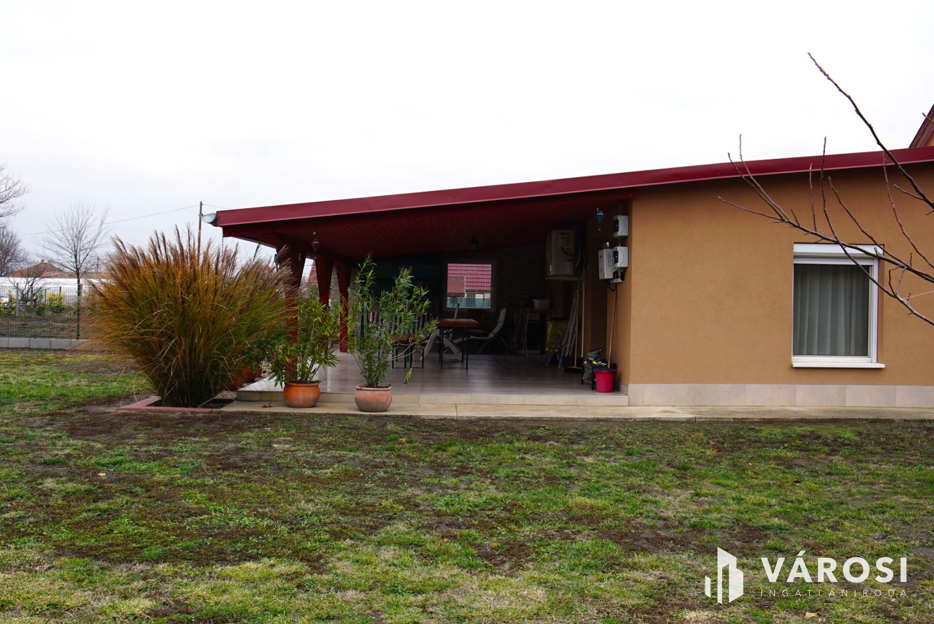 A truly sustainable, spacious, and excellent condition family home is for sale in Röszke! Thanks to its practical layout, it is also suitable for larger families. The house was built in two phases: the original adobe house was completely renovated and extended by the previous owner with a brick-built wing towards the outbuildings. This resulted in a 131 sqm living space, which also includes a 40 sqm covered terrace opening from the living room, connecting the house to the landscaped backyard. Solar collectors are installed on the terrace roof, the outdoor unit of the engineering systems is on the terrace, and the indoor units are located in the utility room next to the modern combi boiler. Thanks to this system, the annual electricity bill is only about 20,000 HUF, covering the grid usage fee. In 2020, the roof was replaced and the solar panel system was installed, further modernizing the property.