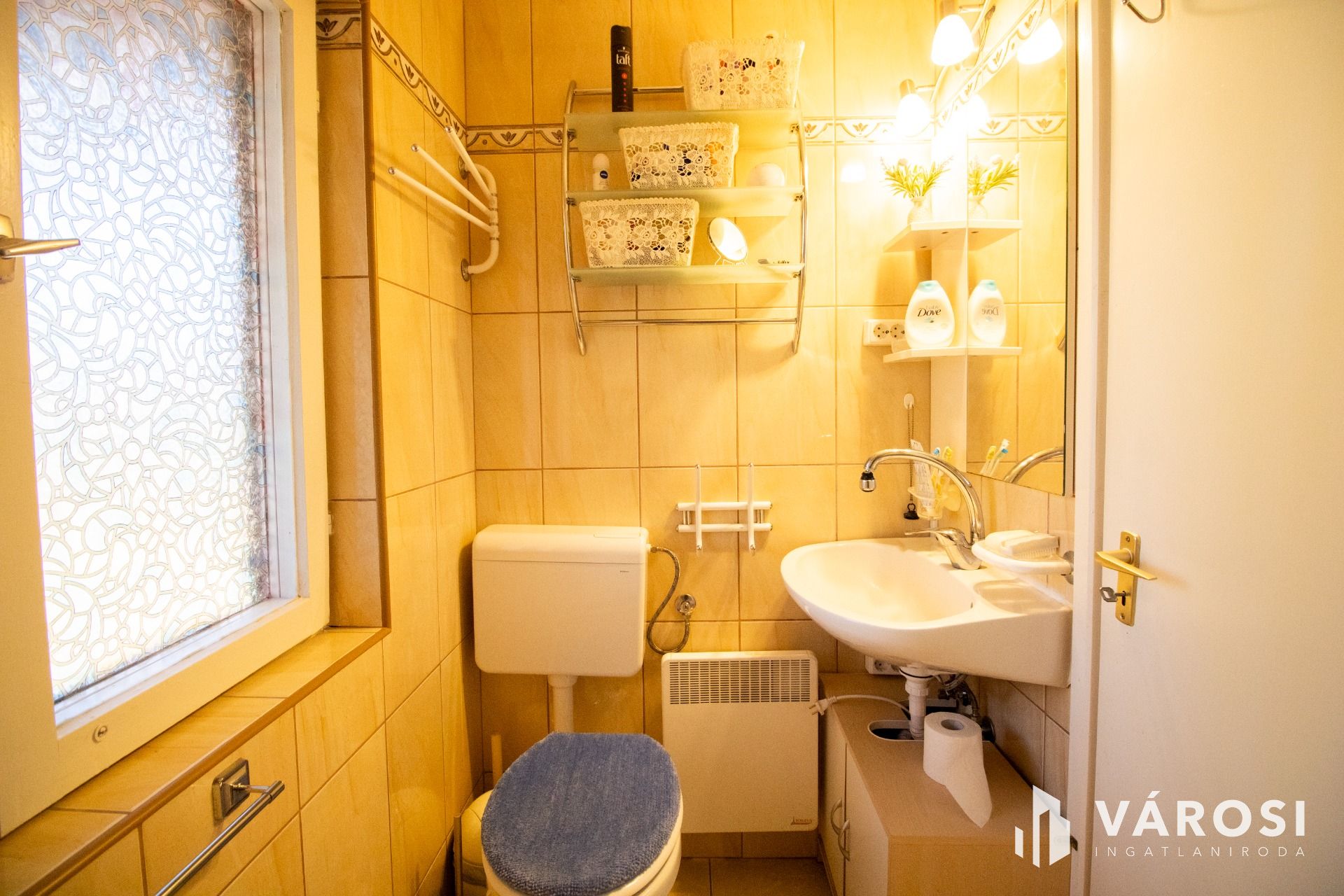 A kert látványa önmagában meghatározza az ingatlan karakterét. A parkosított udvart gondosan kialakított díszfák, bokrok és rendezett zöldfelületek teszik különlegessé, amelyeket automata öntözőrendszer gondoz, fúrt kútról működtetve. A kert egyik legszebb eleme a csobogóval kialakított kerti tó, amely sajátos hangulatot ad az egész udvarnak. A pihenéshez hangulatos filagória áll rendelkezésre, miközben a fedett autóbeálló, az elektromos utcakapu és a praktikus szerszámos fészer a mindennapi használat kényelmét biztosítja. A fészer alatt pince is kialakításra került, ami további tárolási lehetőséget nyújt.