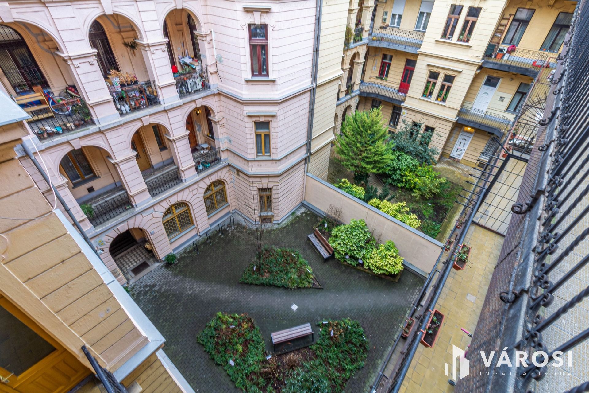 Az ingatlan a társasház legfelső, 3. emeletén helyezkedik el. Belső udvari fekvésének köszönhetően meglepően csendes.