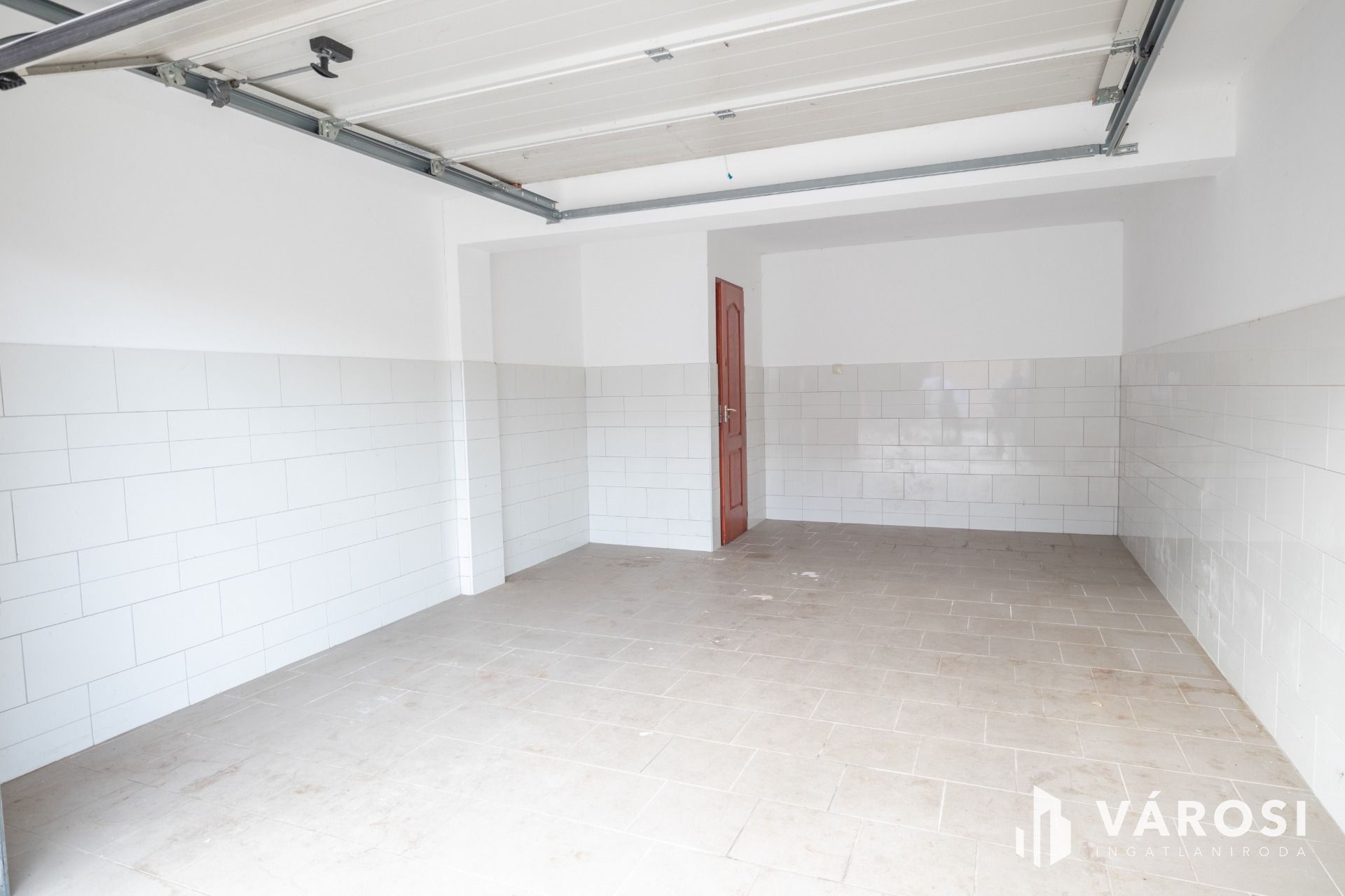 Padlója járólapos, fala csempézett, 2,5 méter széles szekcionált kapuja kényelmessé teszi a ki-és beállást.
