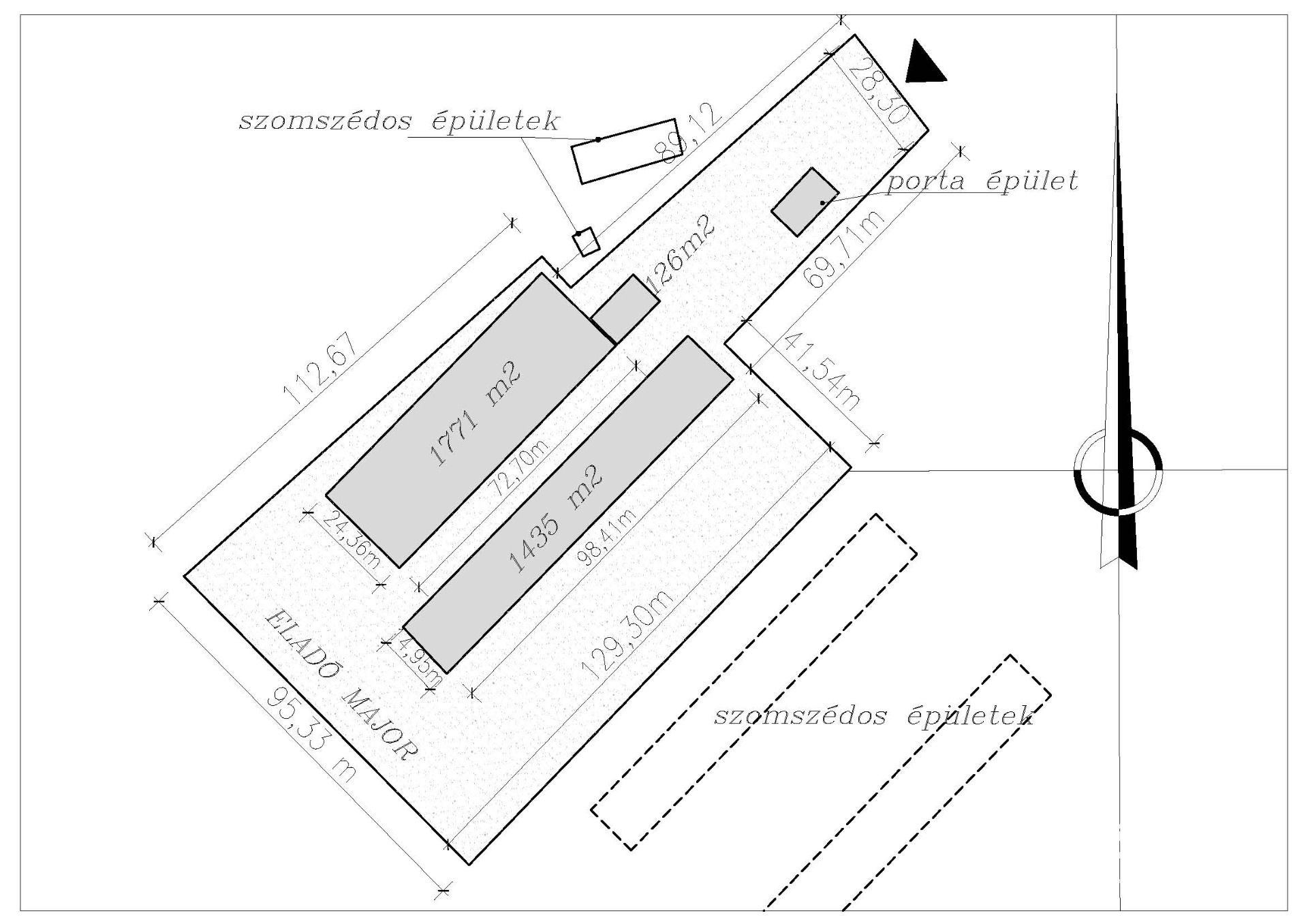 - gazdasági épületek: 1435 m2, 1771 m2,