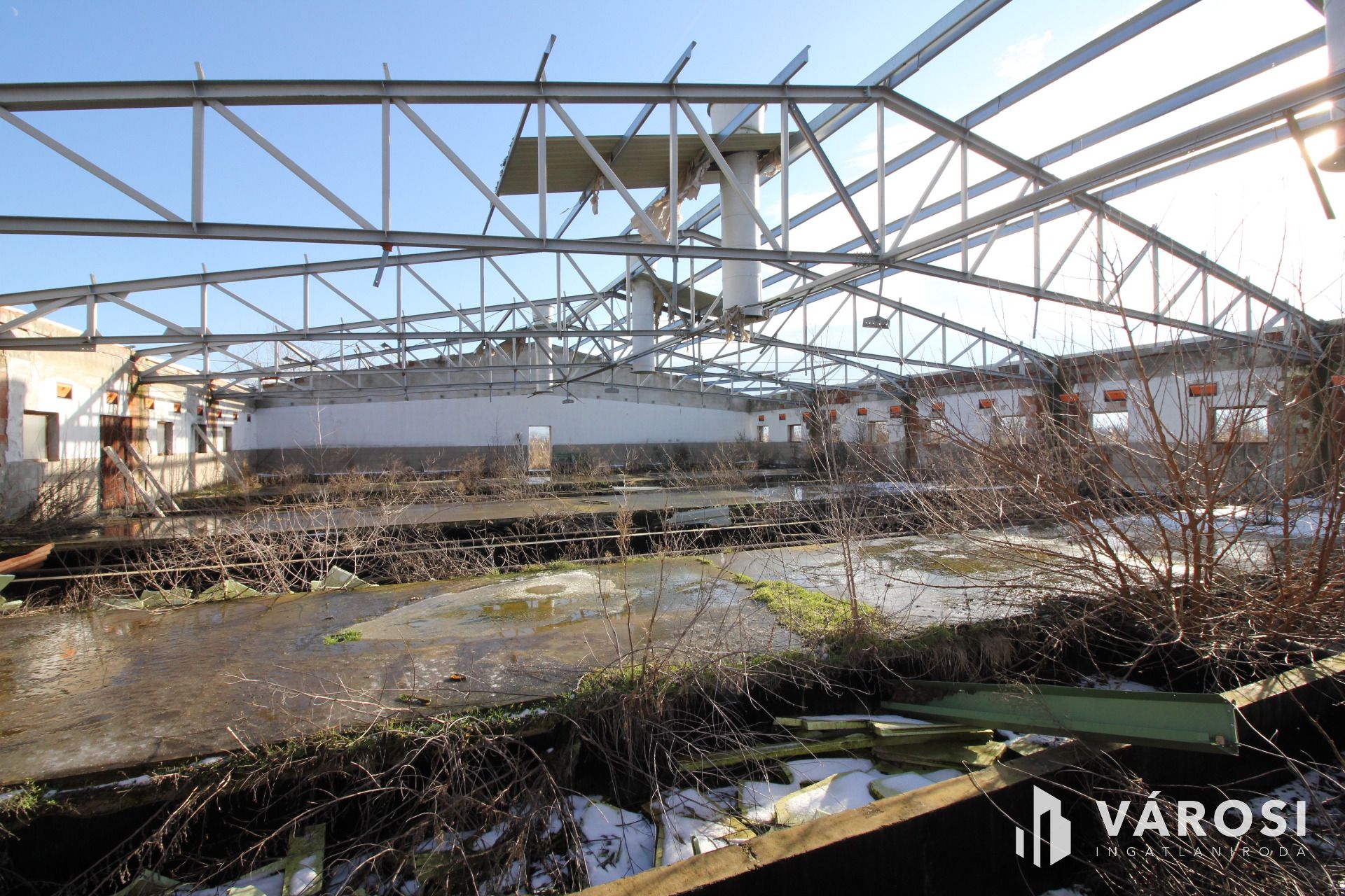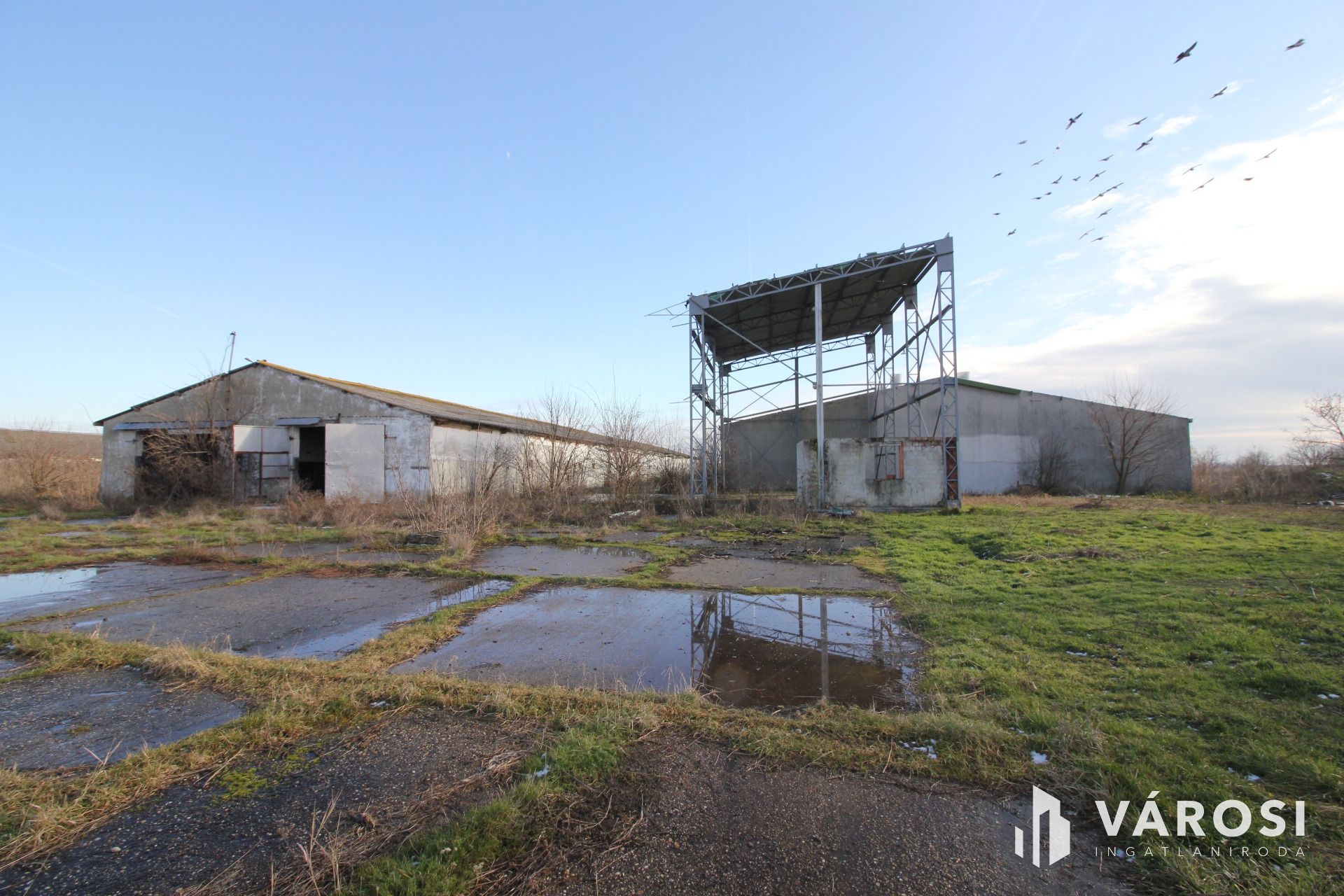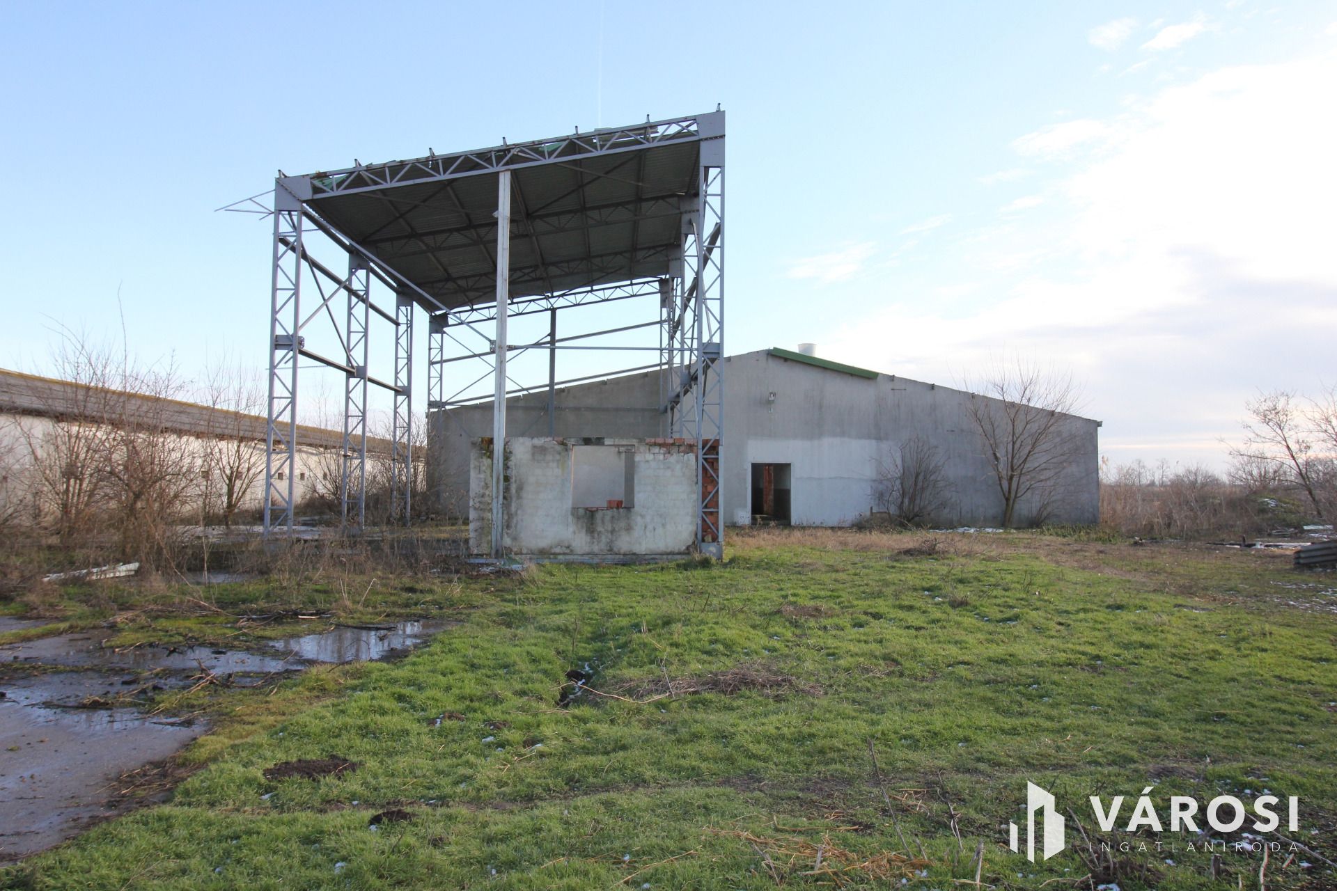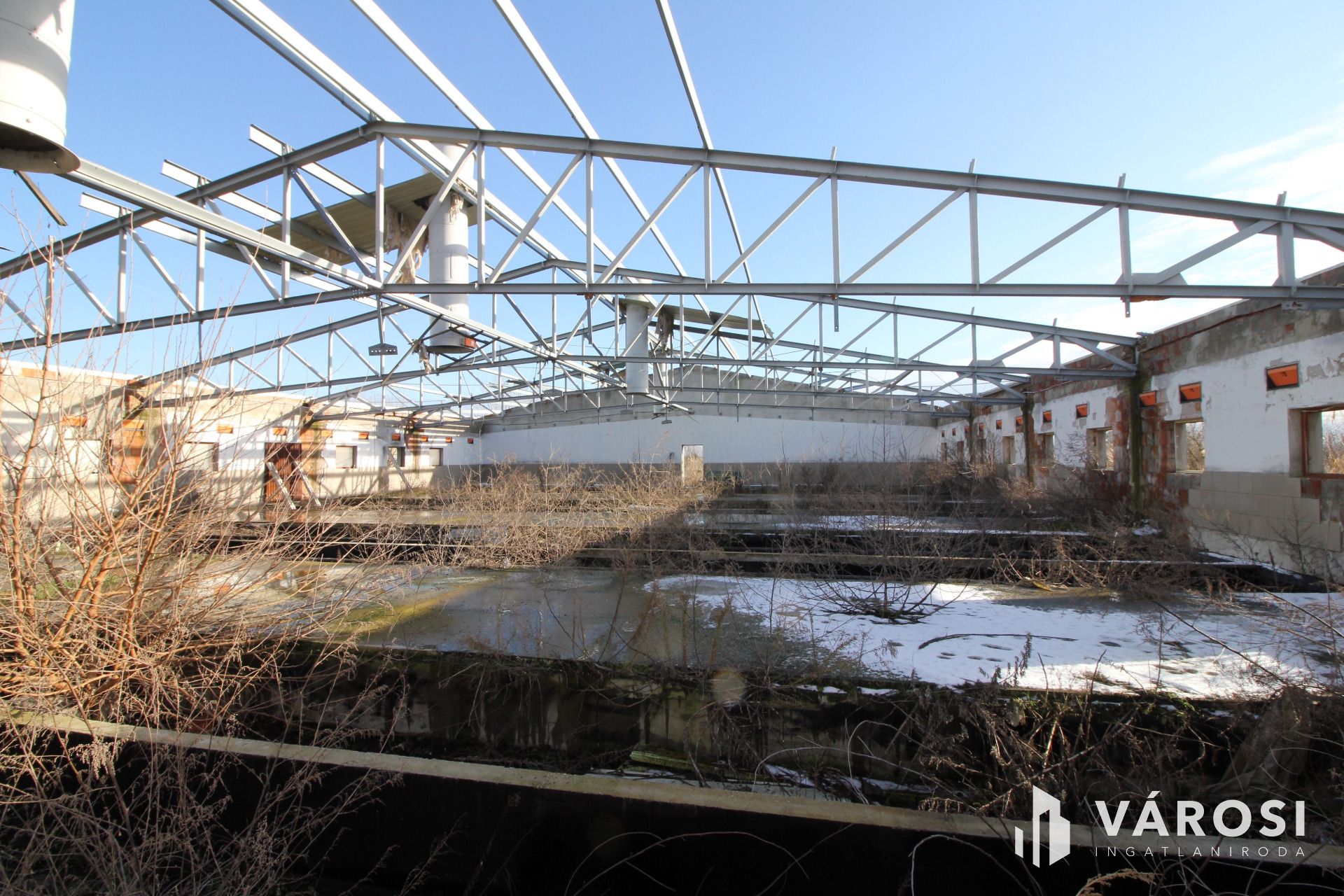 tetőszerkezettel, héjazat nélkül, valamint egy acél szerkezetű ~7m magasságú szénatároló. Az