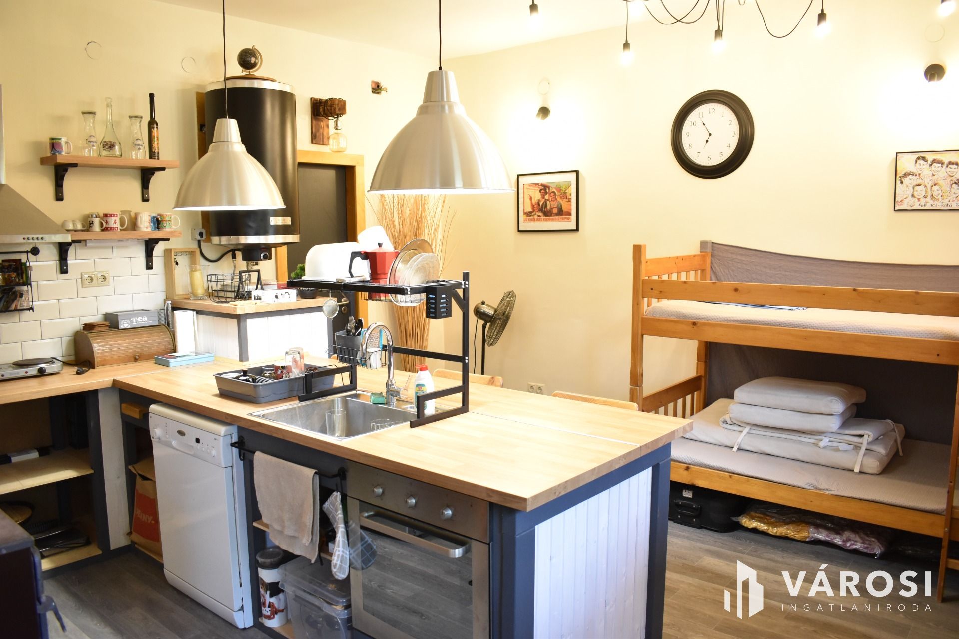 The building on the property was constructed in the 1960s, is structurally impeccable, with brick walls and a reinforced concrete frame. The building previously operated as a grain storage and drying facility. Thanks to its owner, continuous improvements have been made in recent years, including replacement of the water pipes, the entire electrical network, and the installation of 'industrial electricity' (3x50A), which currently operates at residential rates. It is suitable for the installation of a solar panel system. The main building’s roof has been renovated, and mains drinking water has been connected. On the ground floor, a cozy studio apartment (with kitchen, bathroom, and toilet) has been created. Heating is provided by wood-burning, air conditioning with heating/cooling function, and other electric heating options. Spaces for a washing machine, dishwasher, extractor fan, refrigerator, TV, and audio equipment have been set up; hot water is provided by an electric boiler. For goods loading, a large gate has been structurally prepared, with supporting pillars and a lintel. Additionally, foundations and sewage piping have been prepared for a few ‘wet’ rooms.