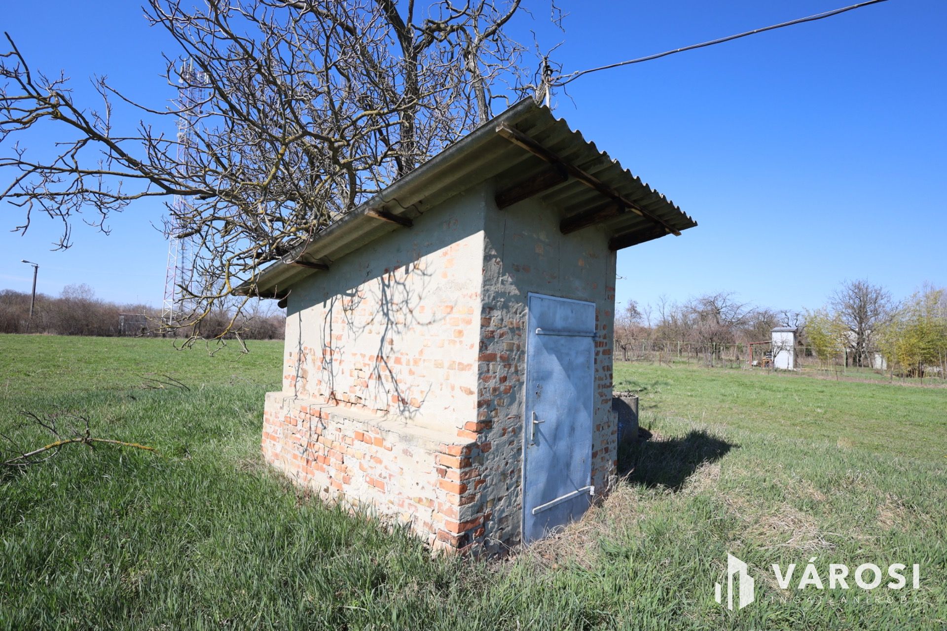 A telekhatárra egy kis alapterületű vályogtégla építésű gazdasági épület került. Az ingatlan részben körbe van kerítve drótkerítéssel.