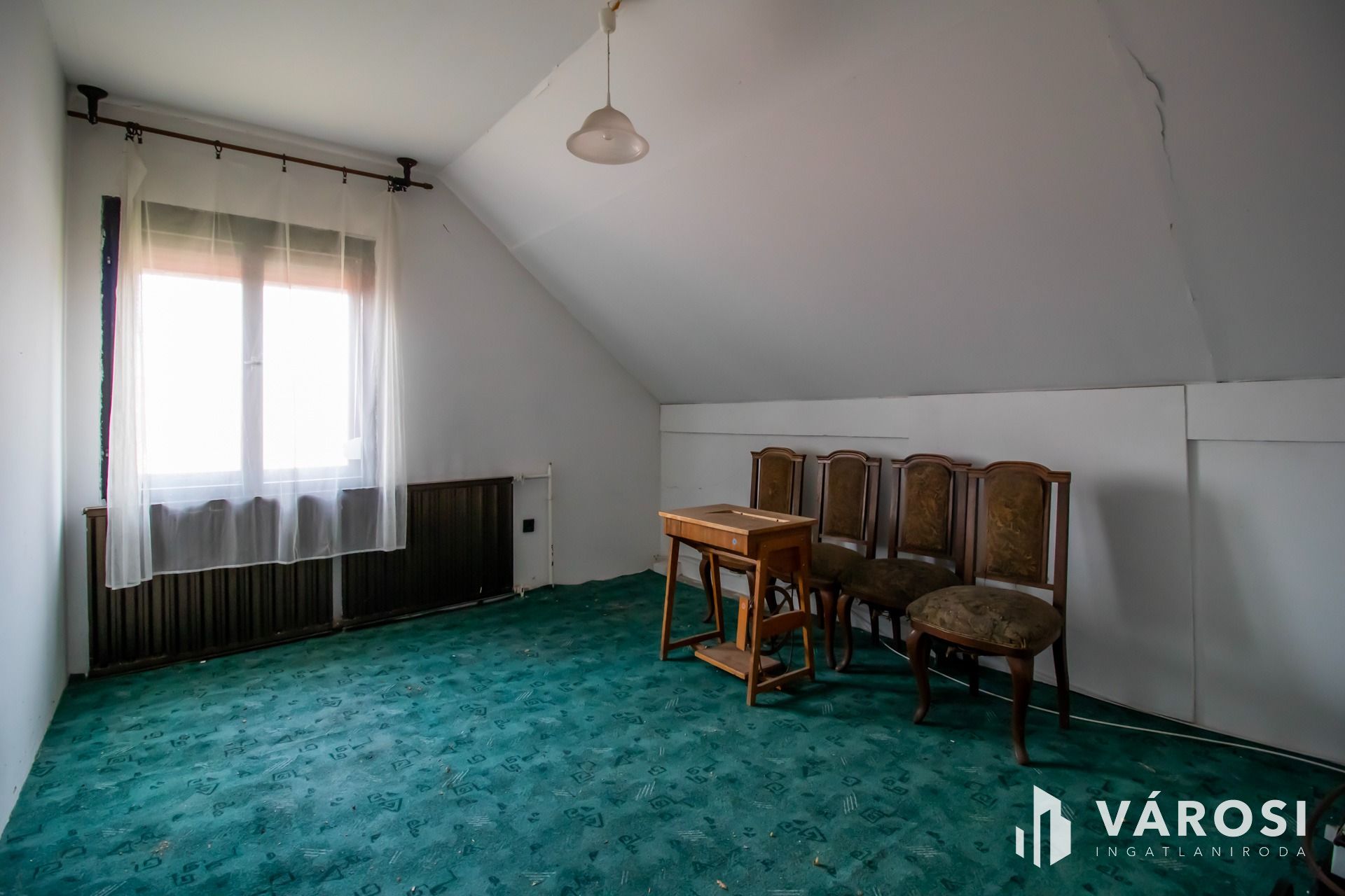 Az 1990-ben porotherm téglából épült, 130 négyzetméteres ház földszintjén nappali, egy szoba, konyha, étkező fürdőszoba és spájz található. Az emeleten három tágas hálószoba és egy fürdőszoba van. A hatalmas, 78 négyzetméteres pinceszint több funkcióra is alkalmas lehet. Egyelőre tárolónak és kazánháznak volt használva, de akár további garázs, műhely, szauna, billiárdszoba stb. is kialakítható. A 12 négyzetméteres garázsba még éppen belefér egy kisebb autó.