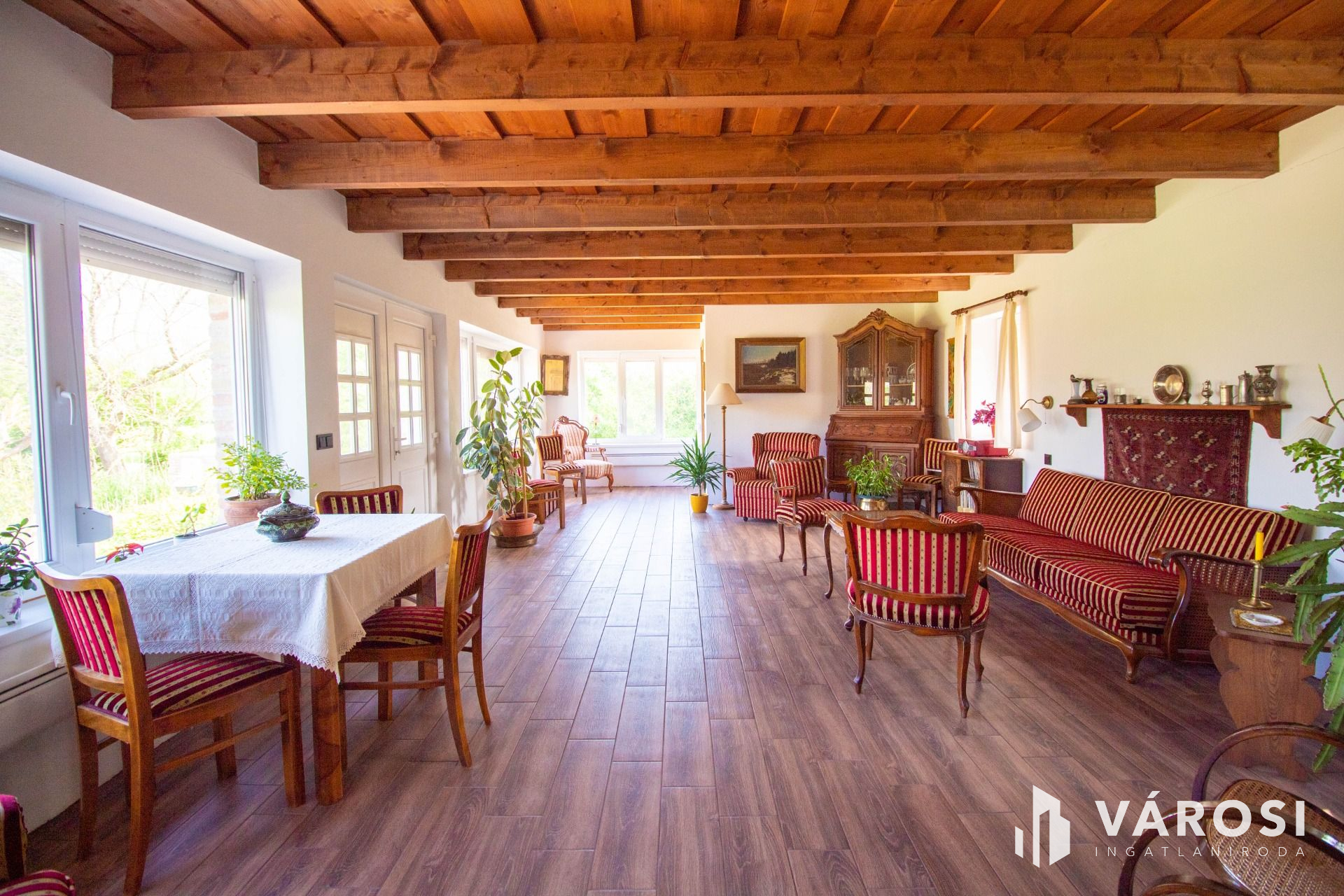 Az eredeti hangulatot megőrizve ebben a látszó gerendás házban a berendezés sem hétköznapi!