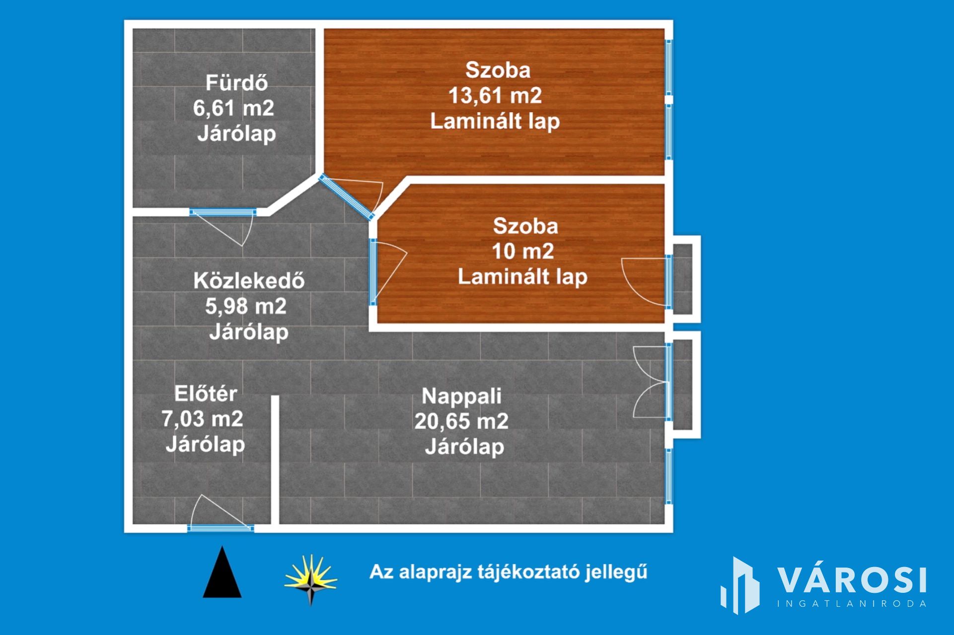 A lakás nyugati fekvésű, napfényes ingatlan.