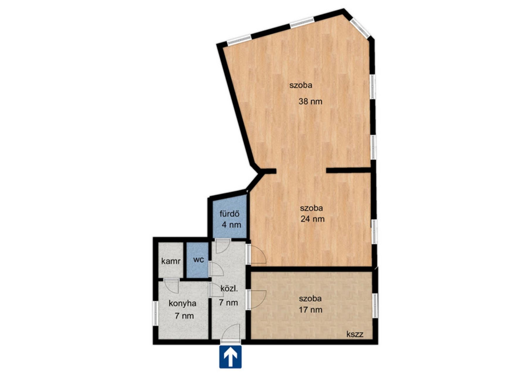 - A felújítás után nappali + 3 ill.4 szoba is kialakításra kerülhet.