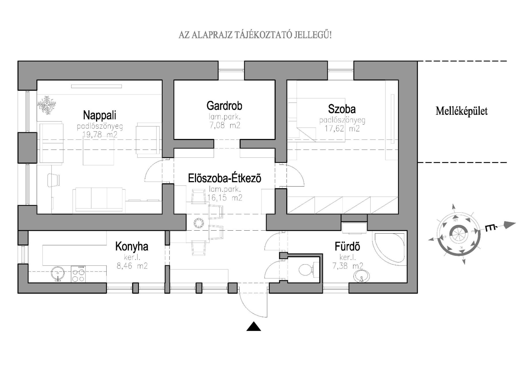 - Előszoba és Étkező : ~16,00 m2