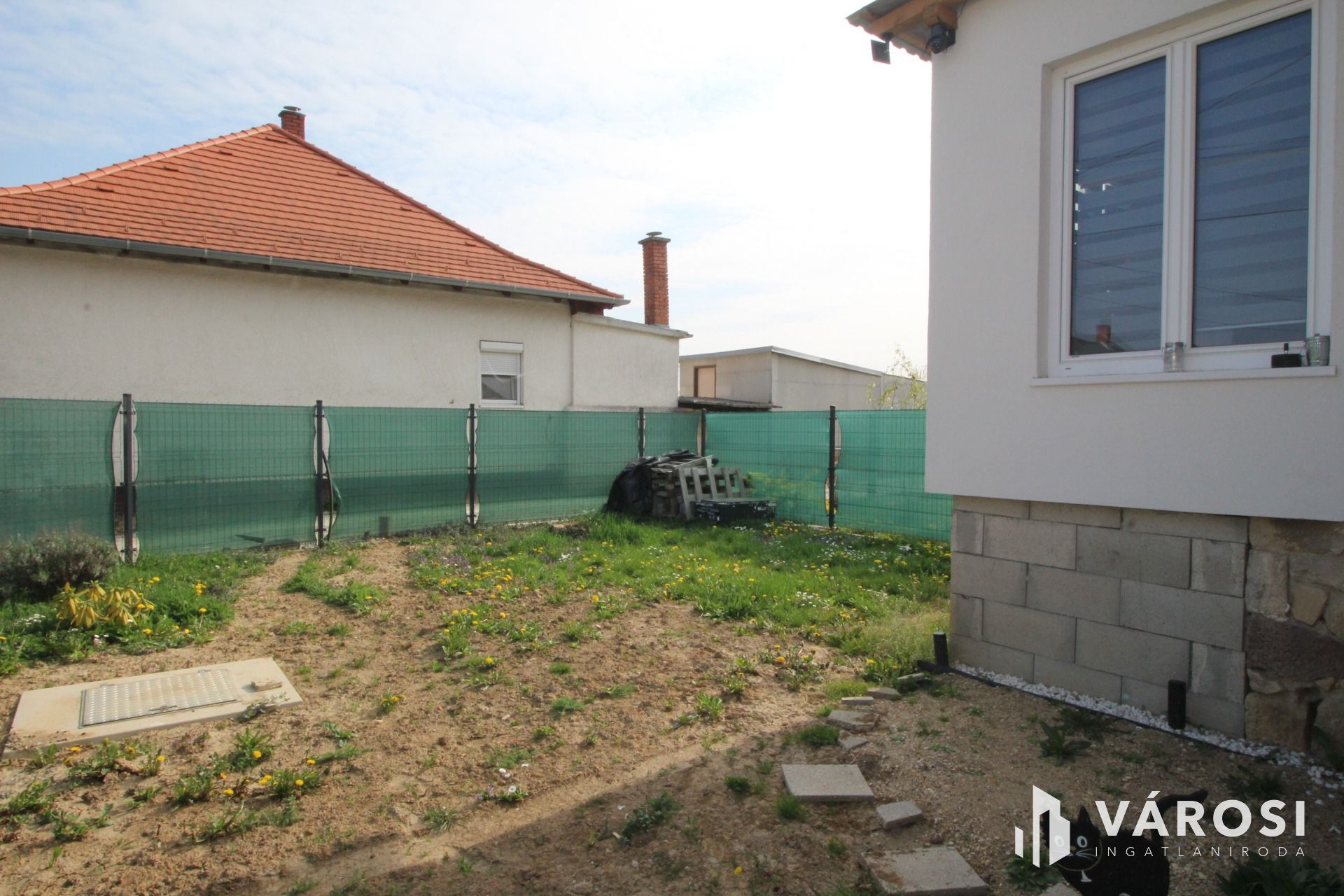 A házhoz tartozik egy 96 m²-es telek, amely ideális kisebb kert kialakítására vagy pihenőkert létrehozására. Az ingatlan részét képezi egy pince is, amely tökéletes tárolási lehetőséget biztosít.