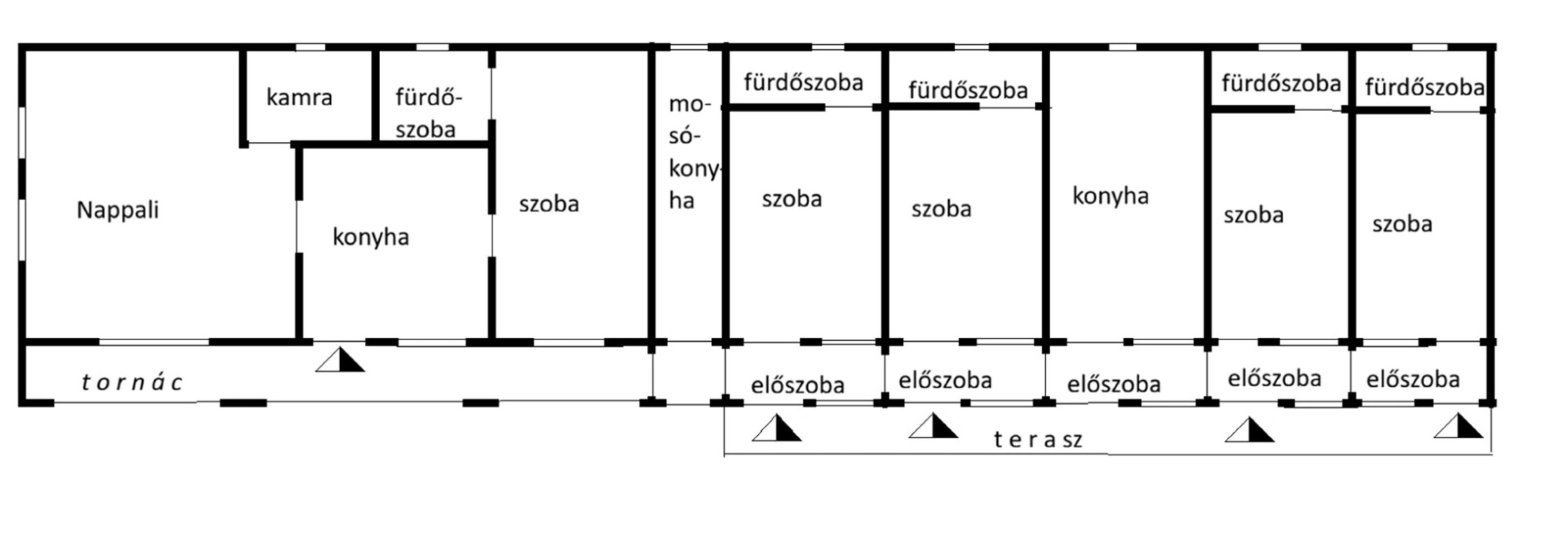 Ajánlom befektetők, vagy vállalkozni vágyóknak is mivel az 55 nm-es , 2 szobás első lakórész mellett, egy 132 nm-es apartmanház is található itt. Az utóbbiban 4 db , 1 szobás apartman található, szoba - fürdőszoba - előtér (melyekben egy-egy mini konyha igény szerint elhelyezhető) és terasz tartozik mindegyikhez. Ezen kívül van itt egy közös - minden vendég számára használható - konyha is.