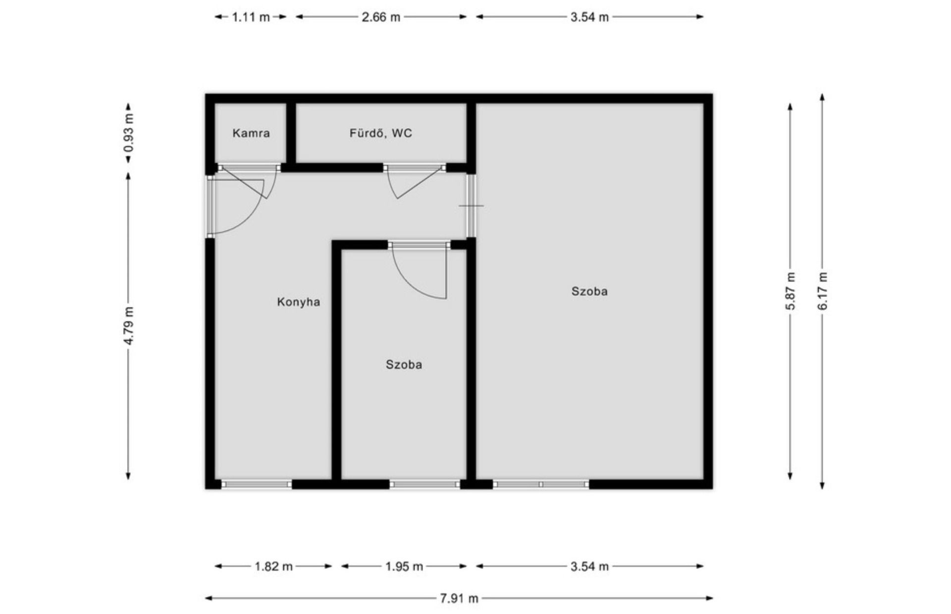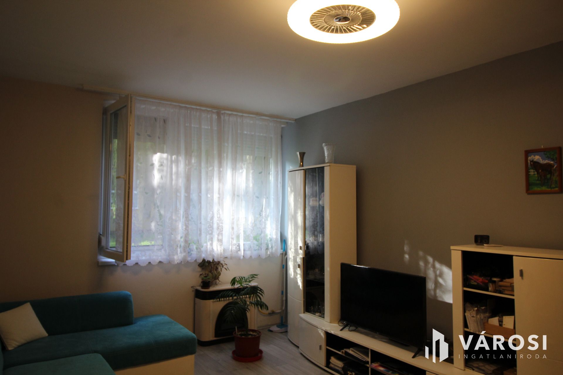 A lakásban előszoba, egy szoba - mely nappalinak is használható - és egy félszoba, fürdő és WC egyben, konyha, illetve kamra helyiségek találhatóak. Rendezett tulajdoni viszonyokkal rendelkező, tehermentes ingatlan. Műanyag szerkezetű, redőnyös ablakok tartják bent a meleget. A kádas fürdőszobában villamos fűtőtest gondoskodik a melegről. A lépcsőházban rendelkezésre áll egy közös tároló is.
