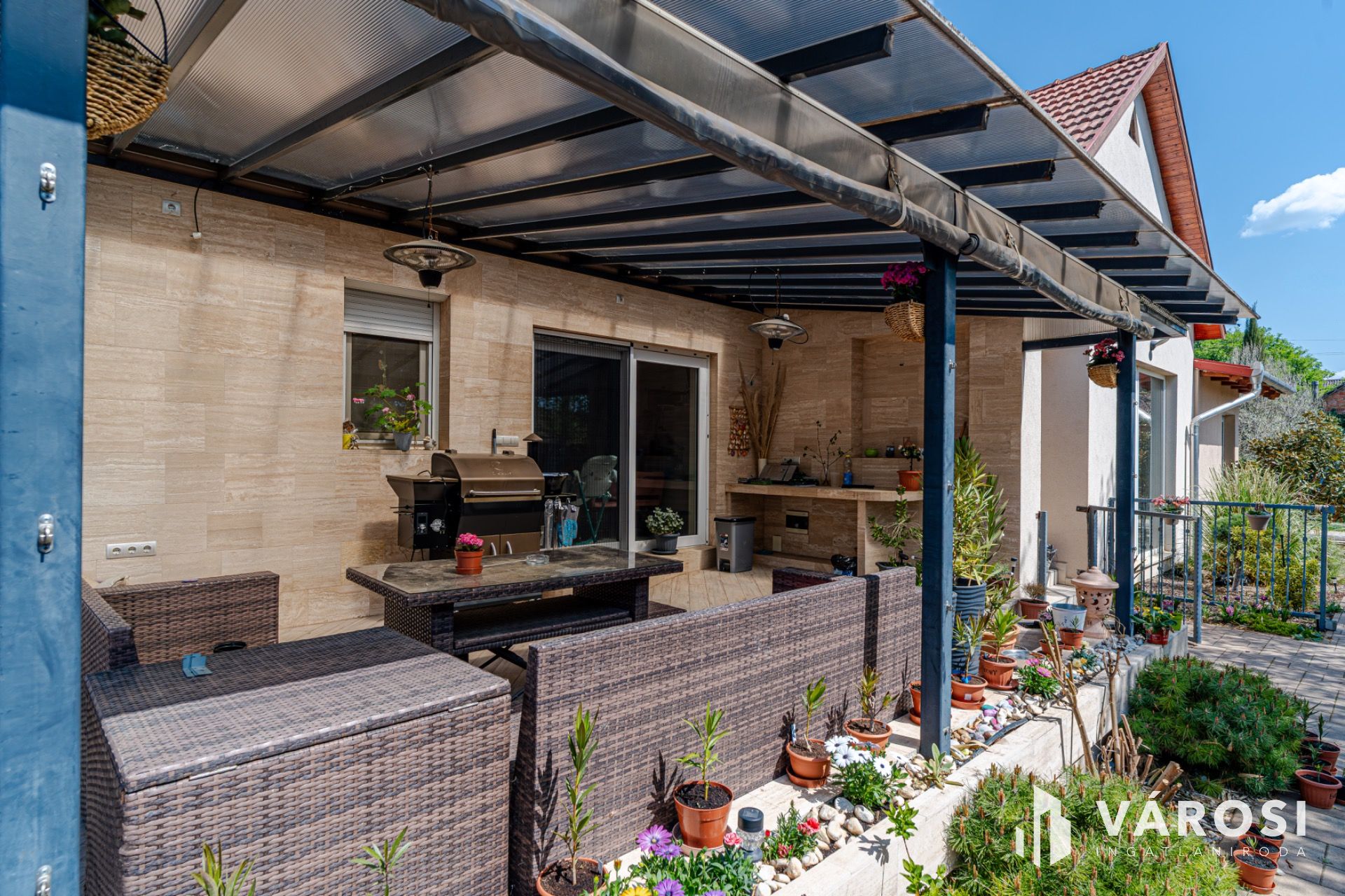 A ház szigetelt ház, az udvaron belül három állásos kocsibeállóval rendelkezik.