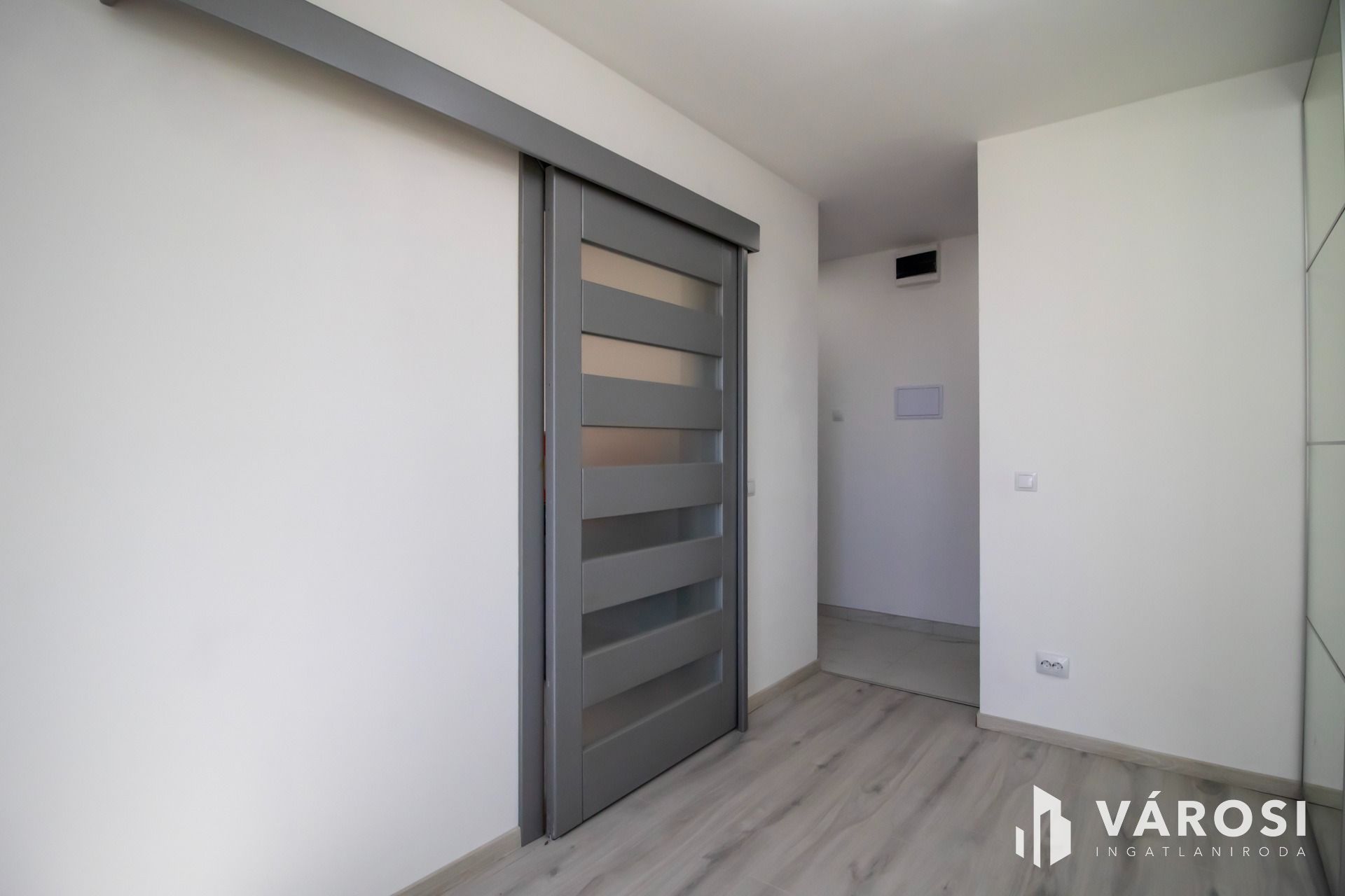A szobák laminált parkettát, míg a nappali, az előszoba, konyha és a vizes helyiségek kerámia burkolatot kaptak.