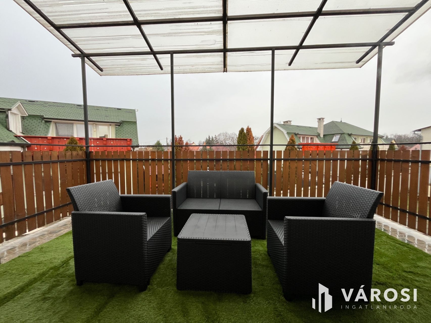 A lakáshoz tartozik egy tágas műfüves kerti bútorokkal ellátott terasz is, ahol élvezheti a zöld környezet nyújtotta nyugalmat. Az udvari gépjárműbeálló biztosítja a kényelmes parkolást. A belváros, a sétálóutca, és a Fürdő közelsége pedig garantálja az igazi Hajdúszoboszlói életérzést!