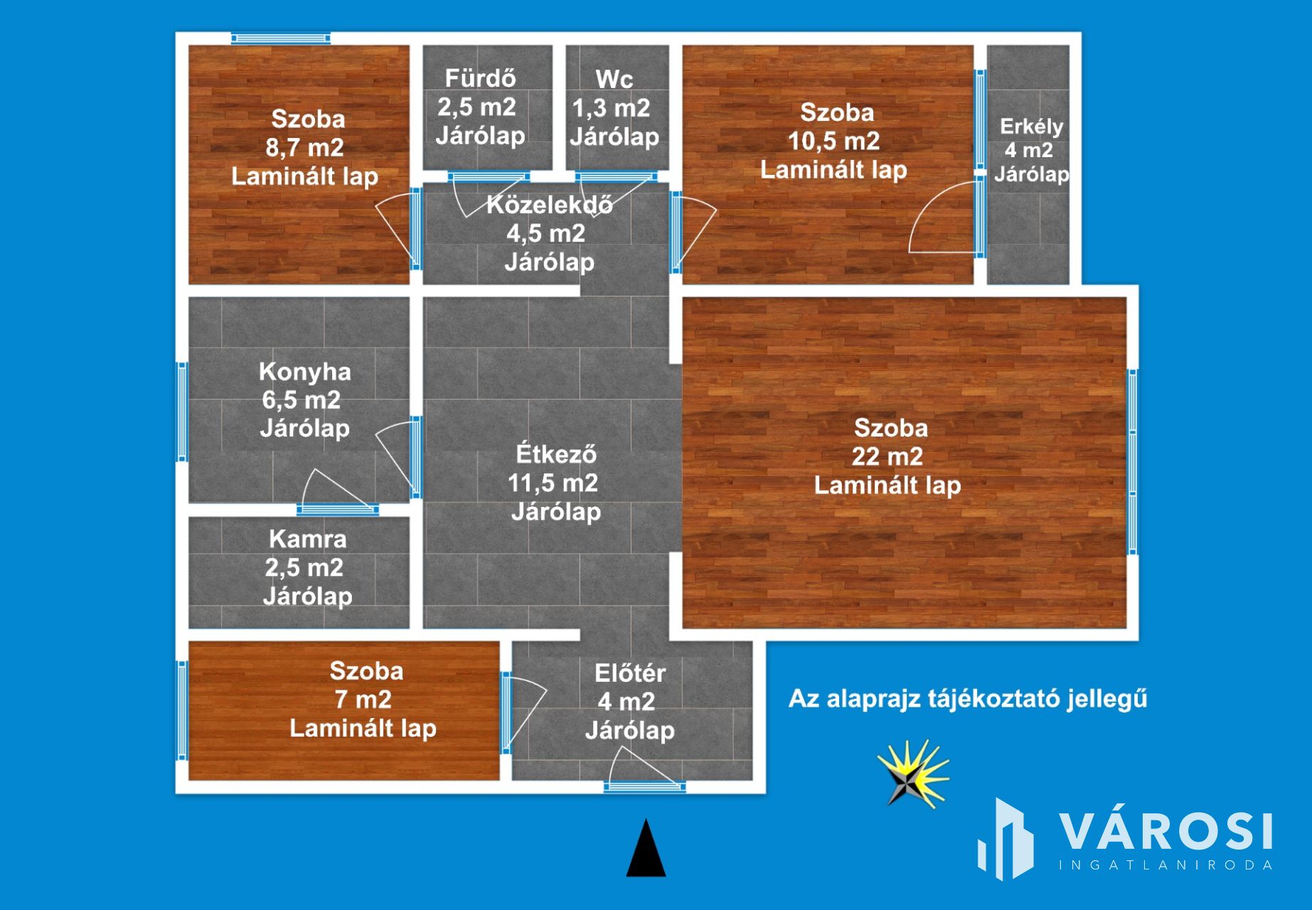A lakás 1 db nappalival ( 22 nm ), 2-3 db hálószobával, 1 db fürdőszobával, külön Wc-vel, konyhával, külön étkezővel, közlekedővel, előtérrel, erkéllyel rendelkezik. Az ingatlan elhelyezkedésre, kialakítása miatt rendkívül sokrétű a felhasználása - akár lakás, vagy befektetési célra -, amely maximálisan kiemeli ezt az ingatlant az átlagos lakások sorából és egyedülálló választássá teszi azt.