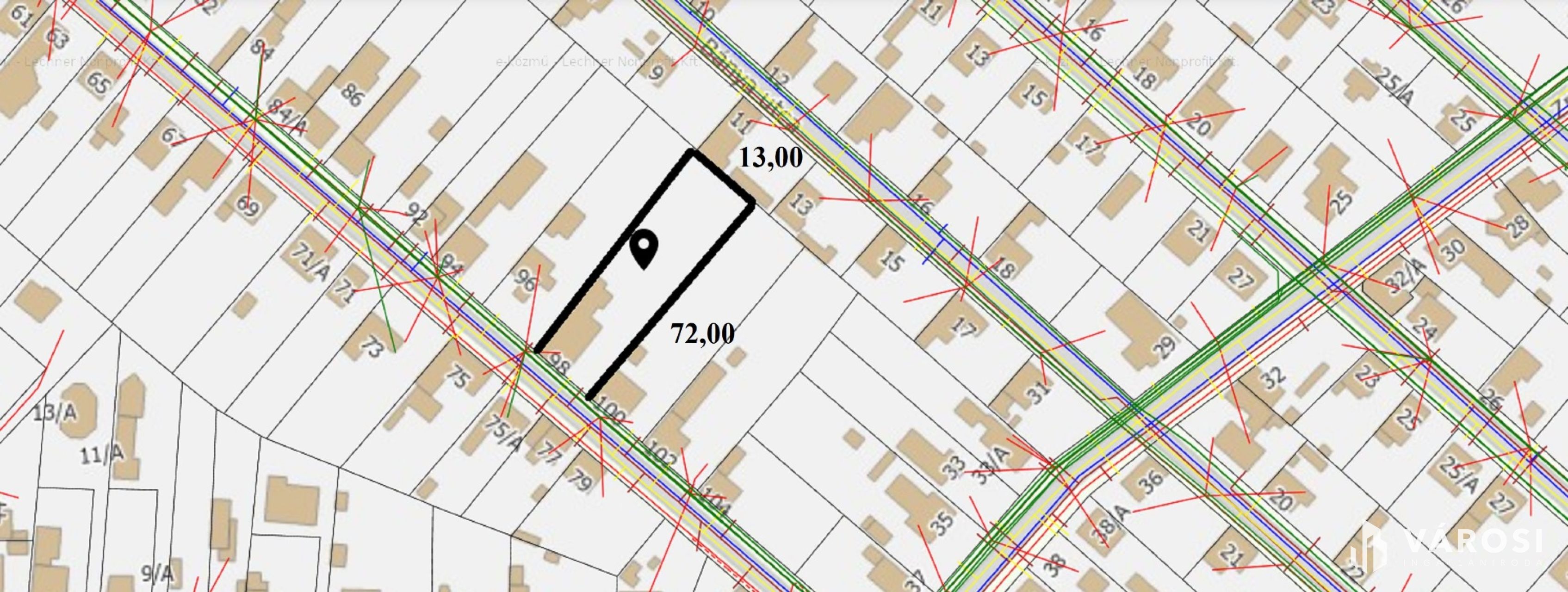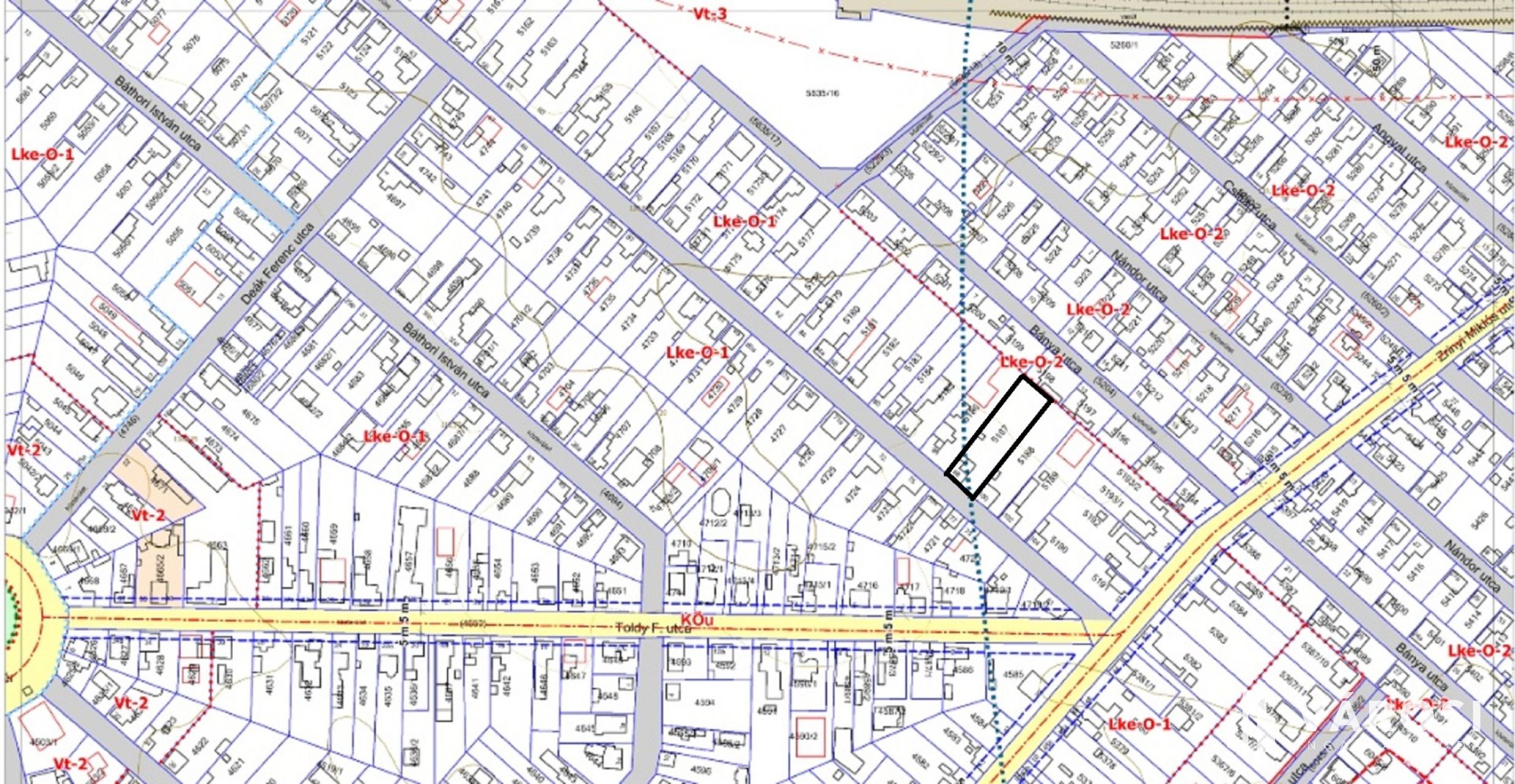 A telek besorolása: Lke-O-1-es amely 1 ikerház és melléképület(akár iroda vagy kereskedelmi egység) elhelyezésére ad lehetőséget.