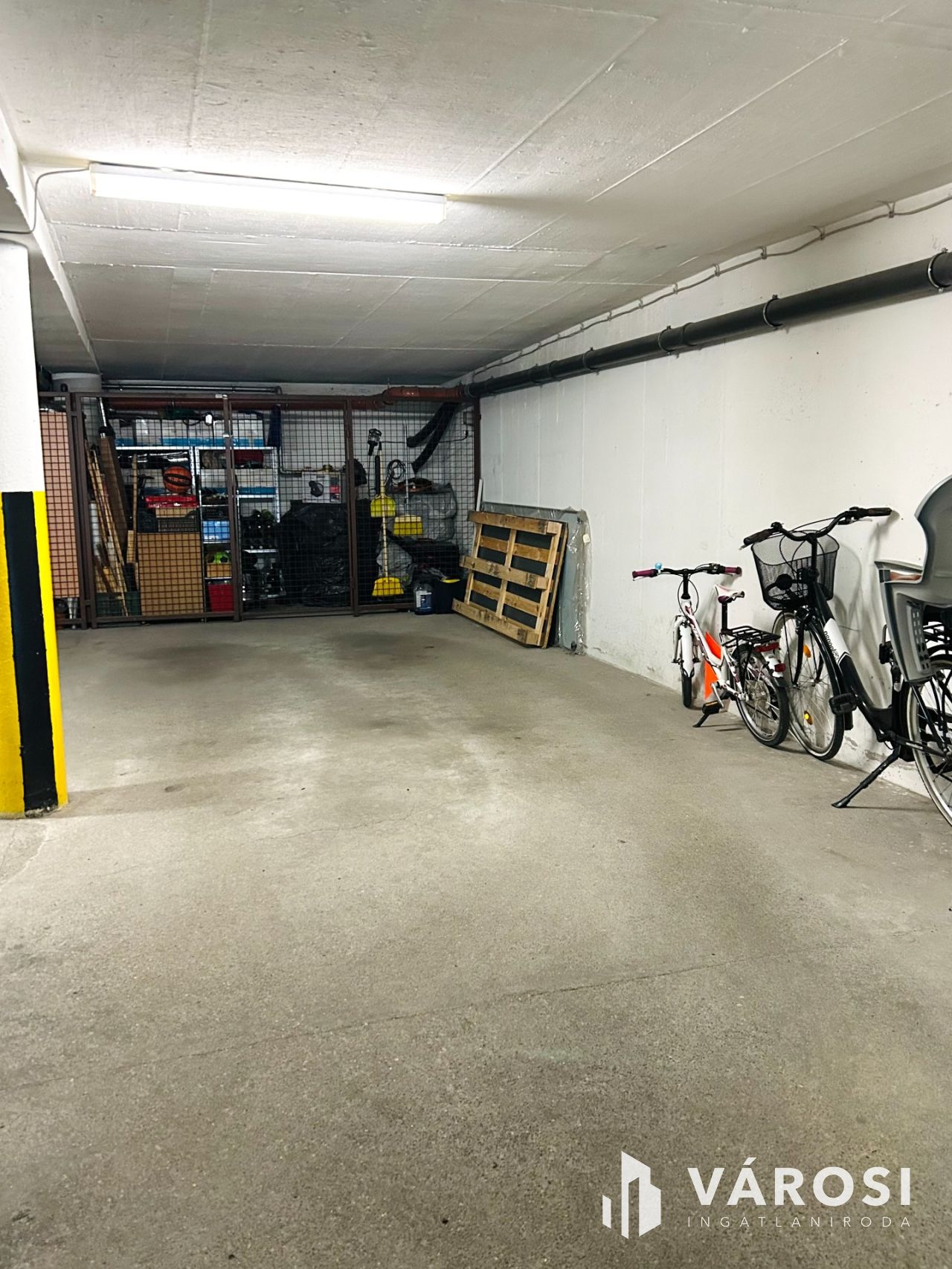 Az épület mélygarázsában található 22 m²-es beálló, zárható tárolóval (vételára 8 millió Ft), egy 17 m²-es beálló (6 millió Ft), valamint egy külön zárható 4 m²-es tároló (3 millió Ft), melyek opcionálisan megvásárolhatóak.