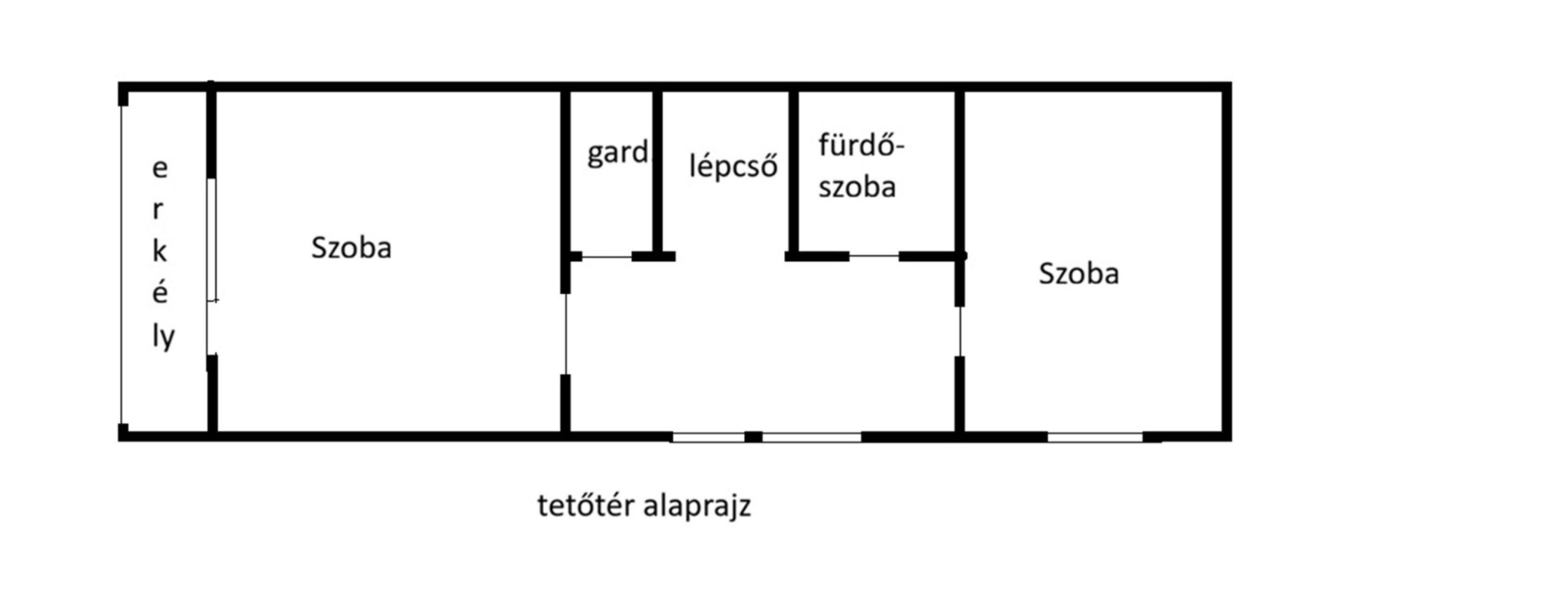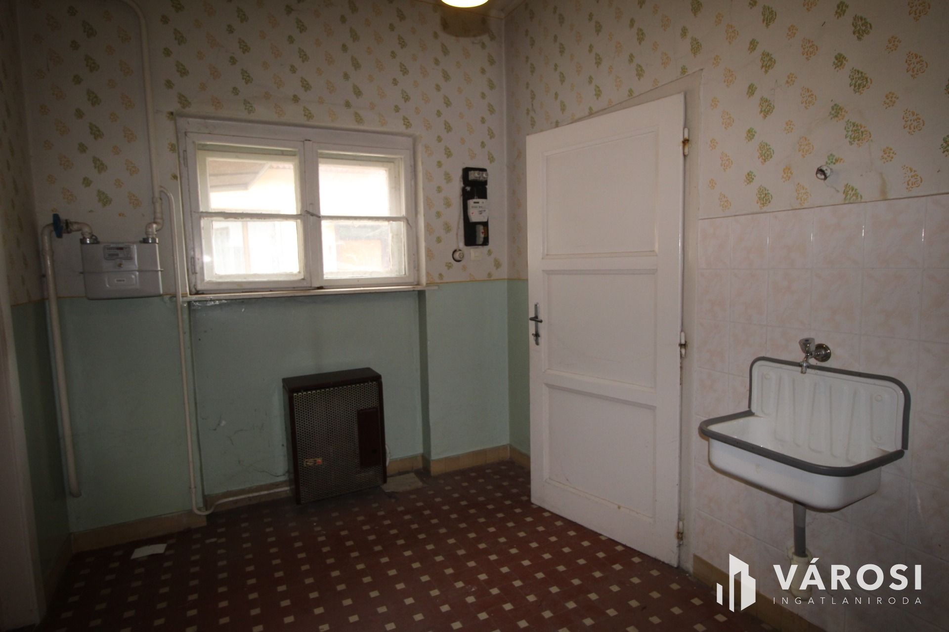 És az első (utca felőli), 1940-es években téglából épült, felújítandó állapotú 1 szoba+konyha épületrészből.