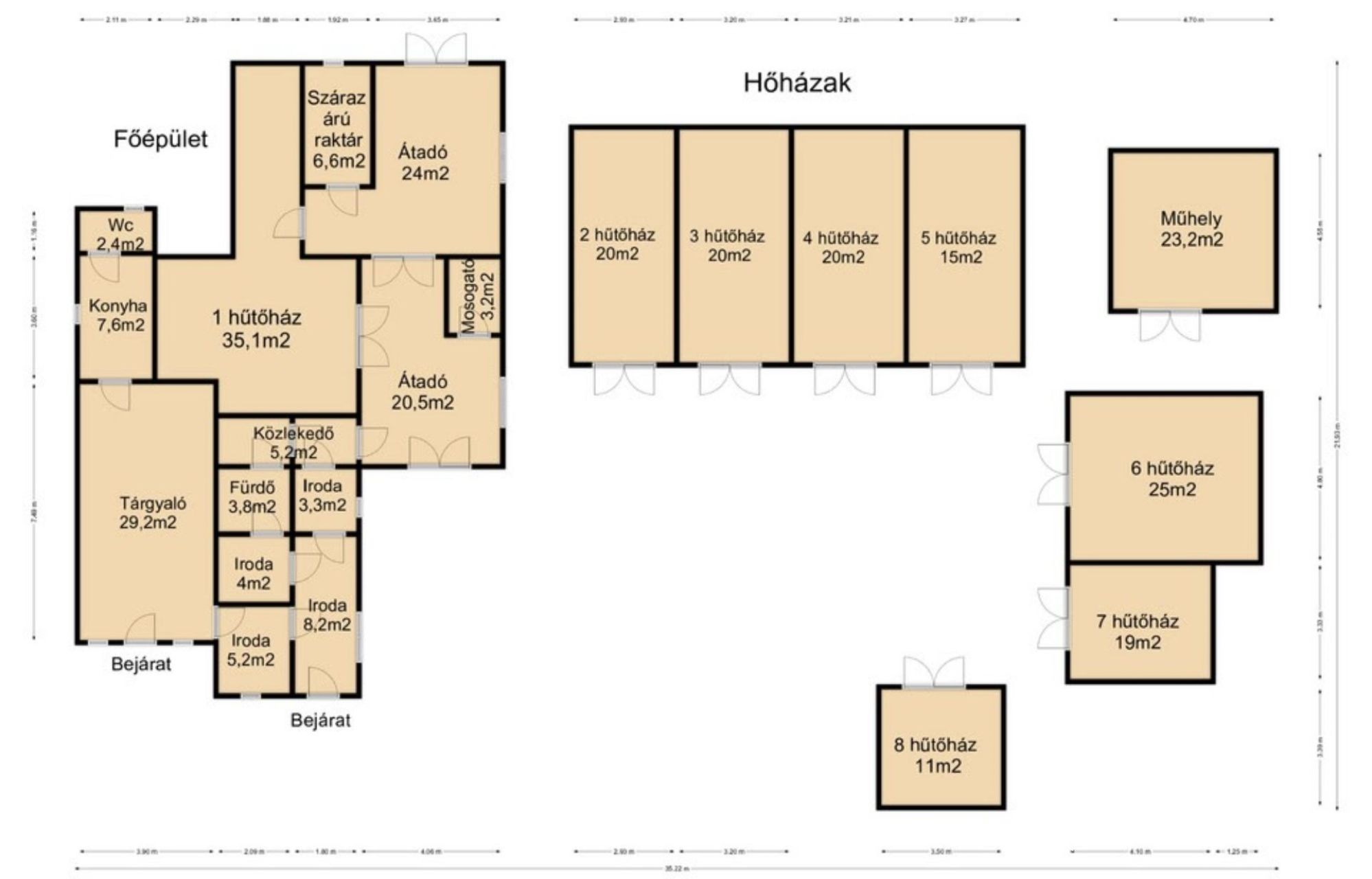 - 18 átalakított szervízelt hűtőautó, 1 targonca, 1 terepjáró, teljes iroda felszerelés, főépület mely 2004-ben épült számos helységgel, 8 hűtőkamra ( 0- 3 fokos), műhely, kamera és riasztórendszer, tárolóládák...stb.