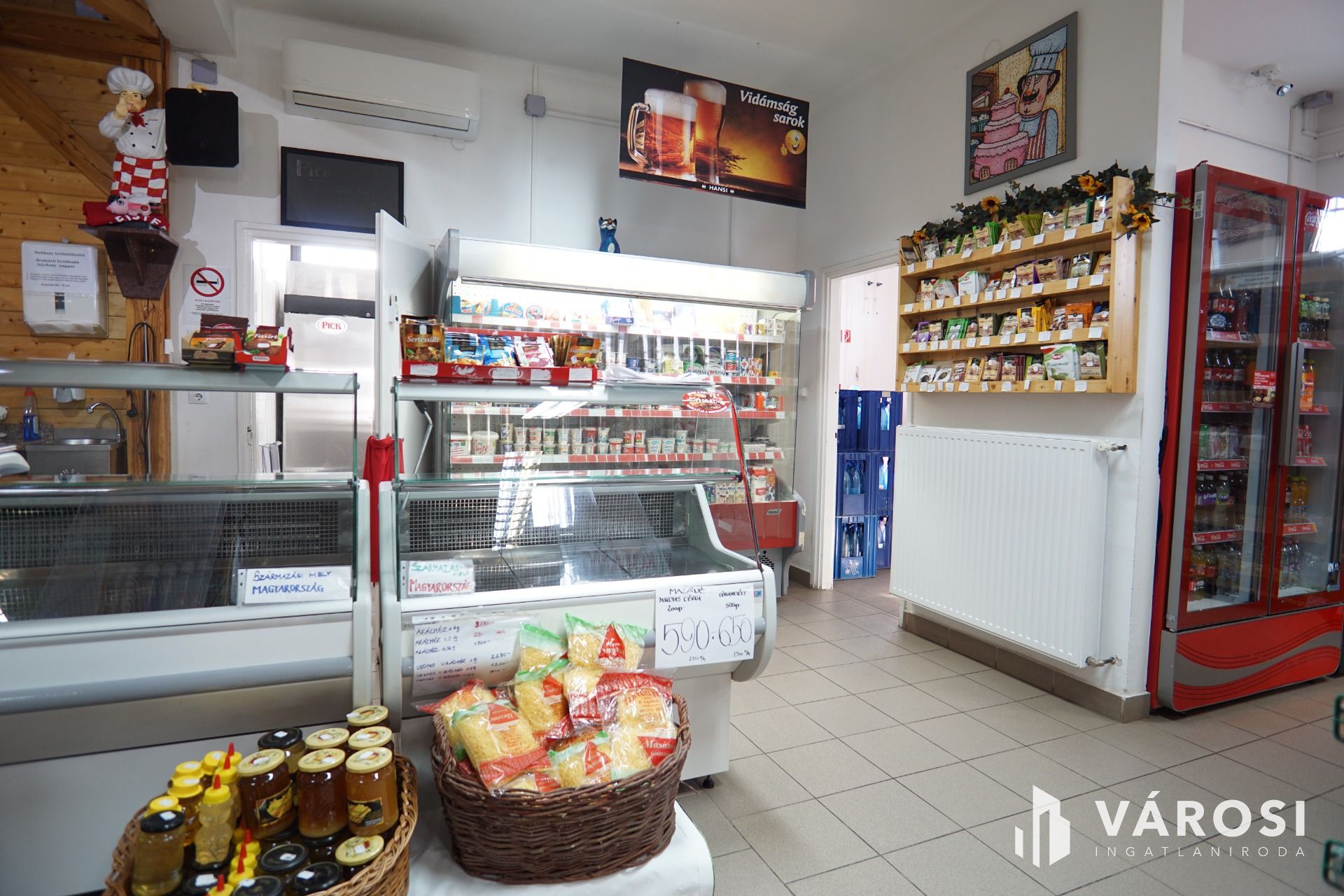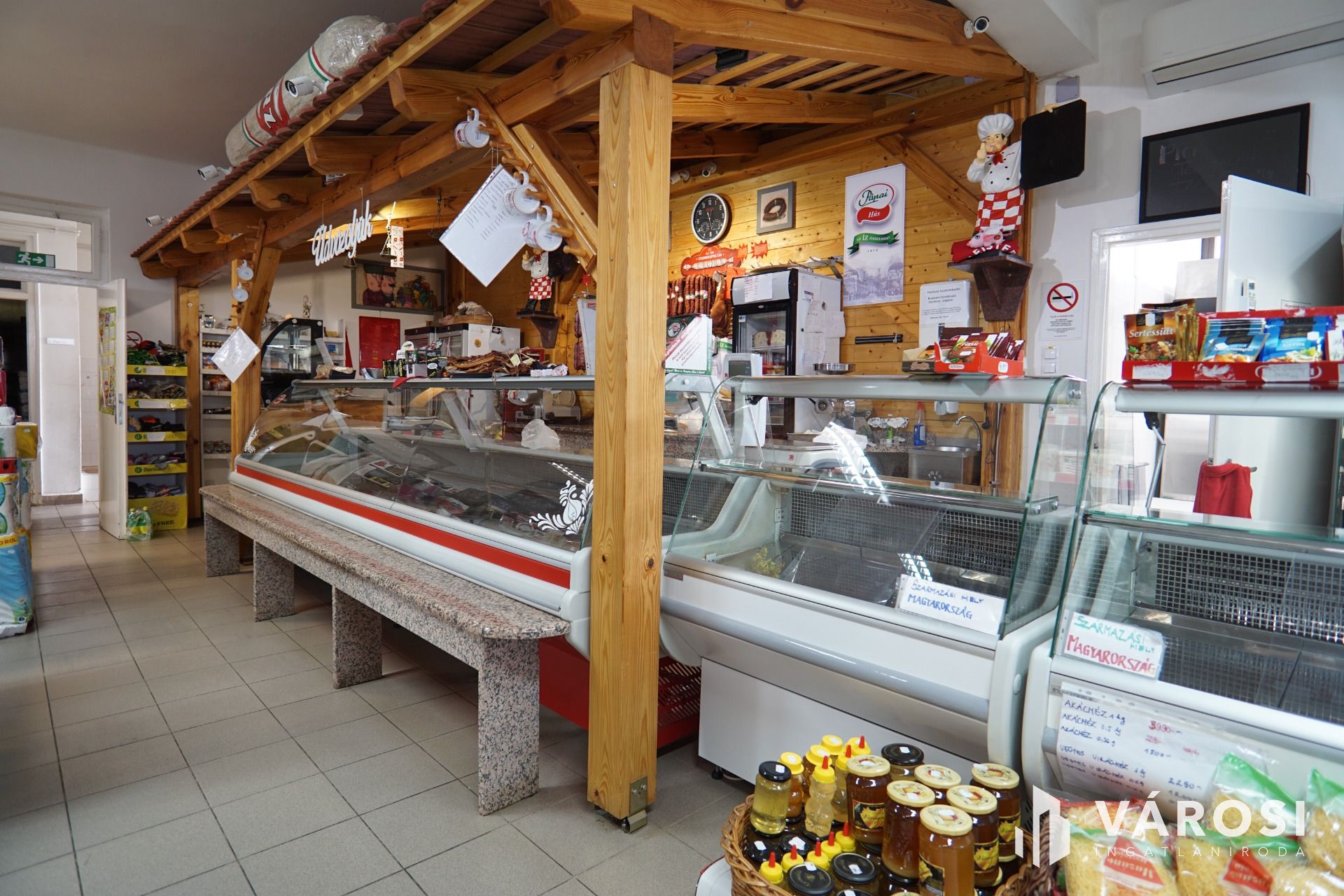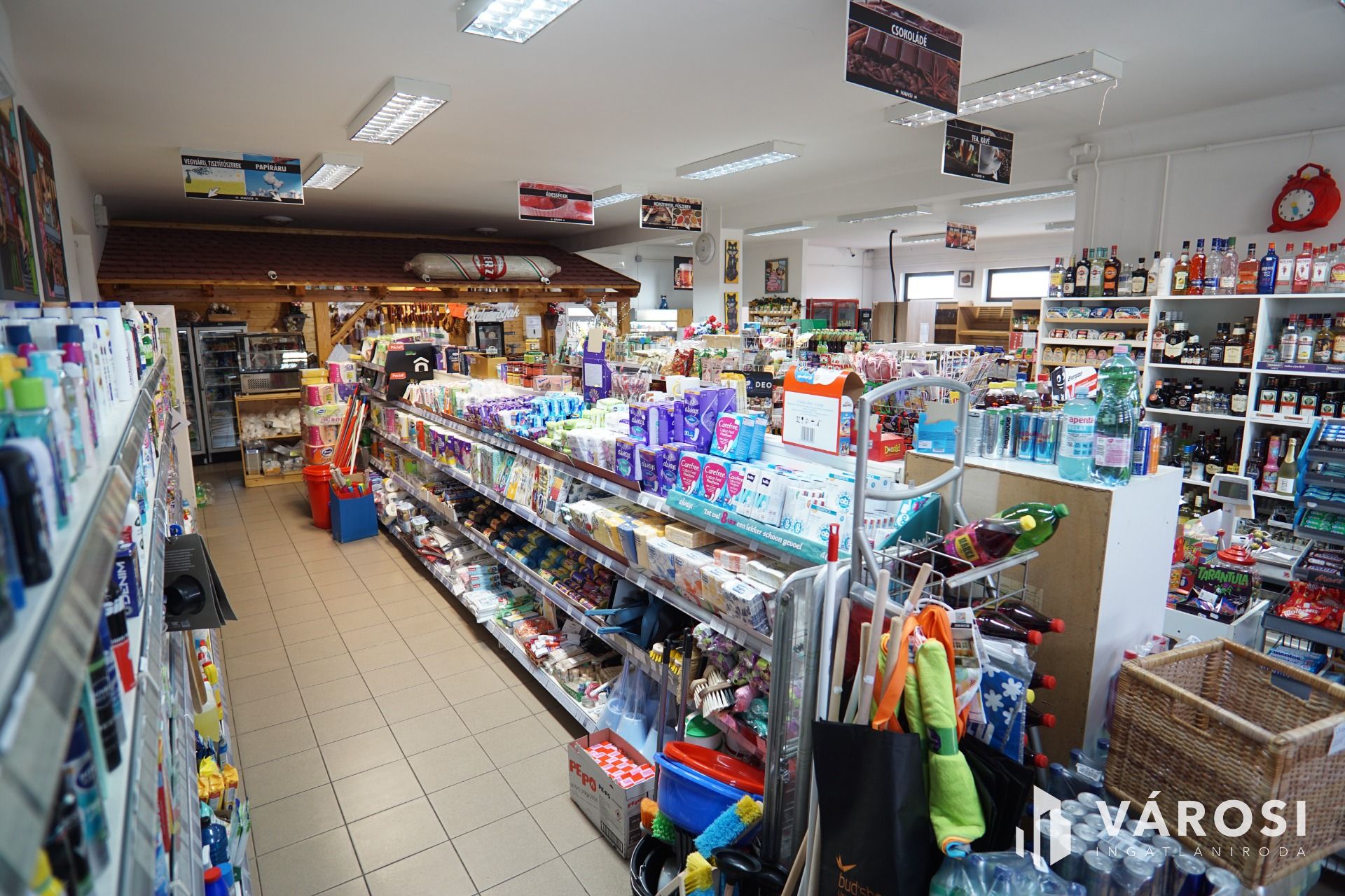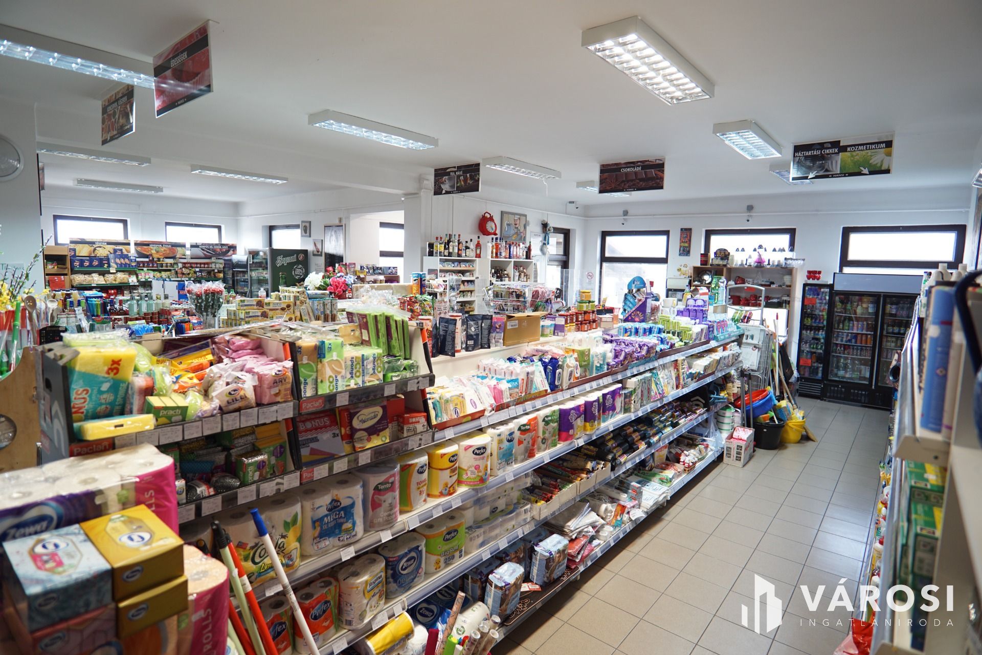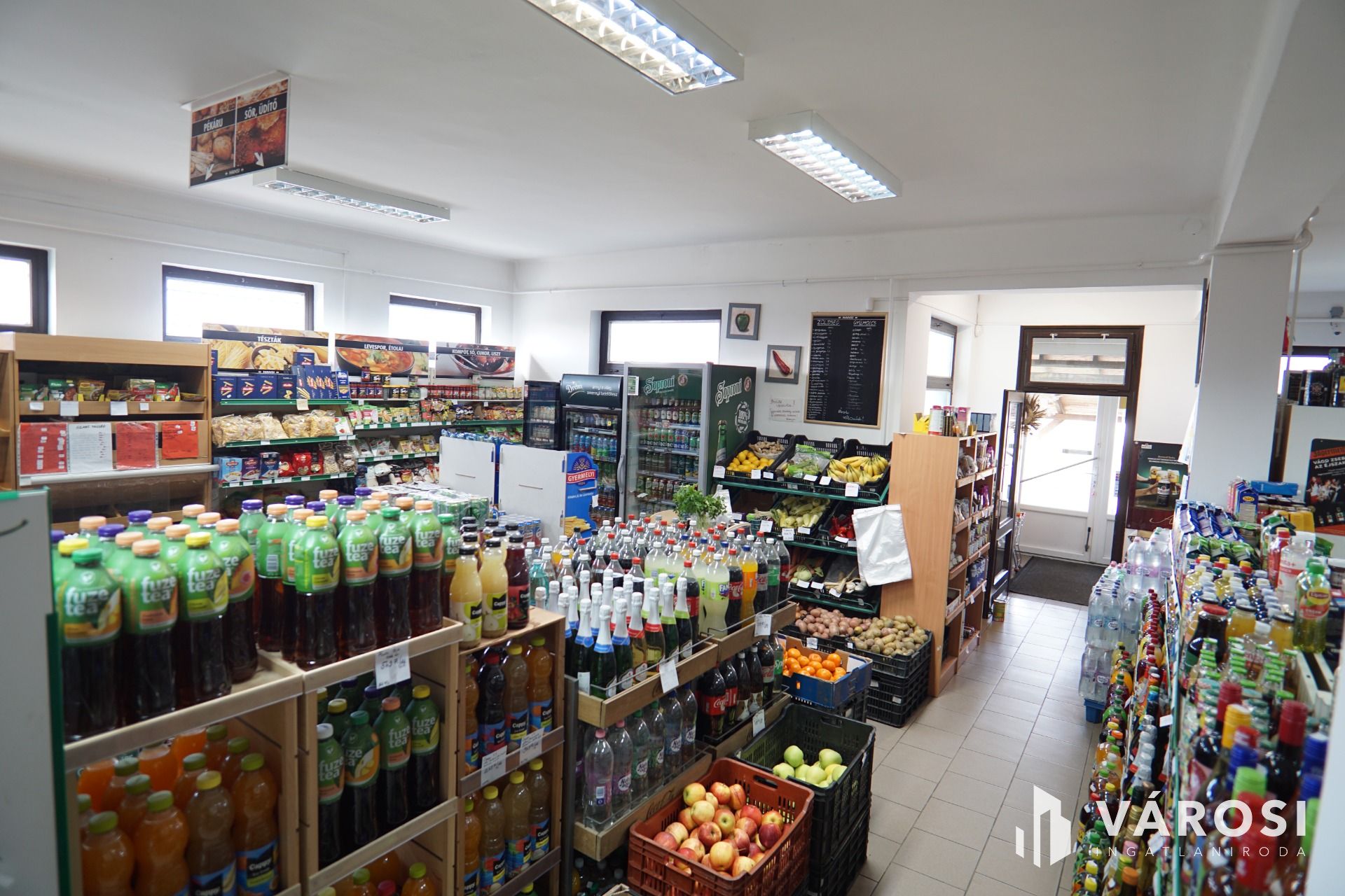 Az épületben lévő teljes felszerelés, polcok, hűtők valamint a teljes árúkészlet a vételár részét képezi.