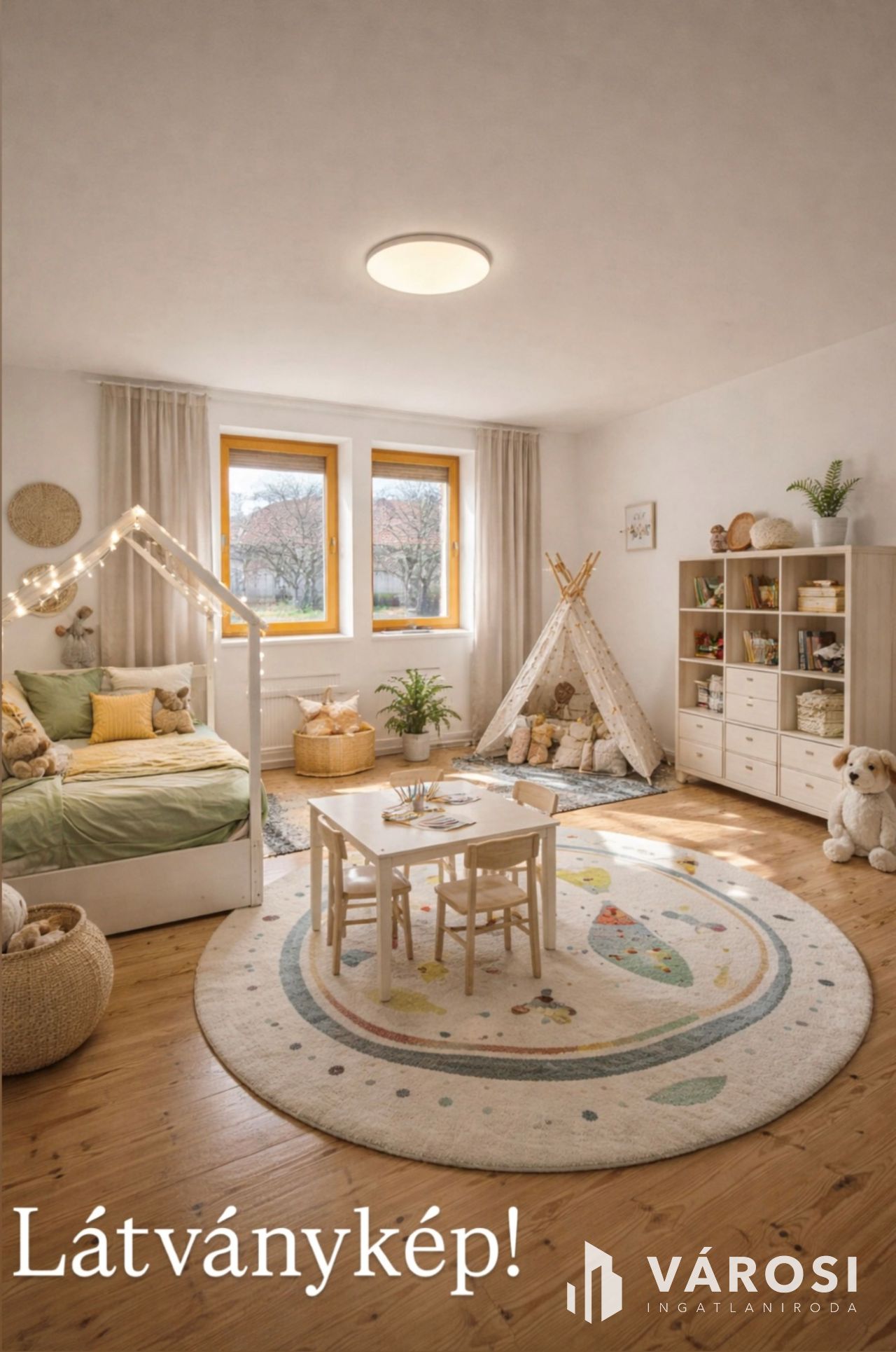 Az ingatlan 150 m² lakóterű, kényelmes méretű, napfényes helyiségekkel: