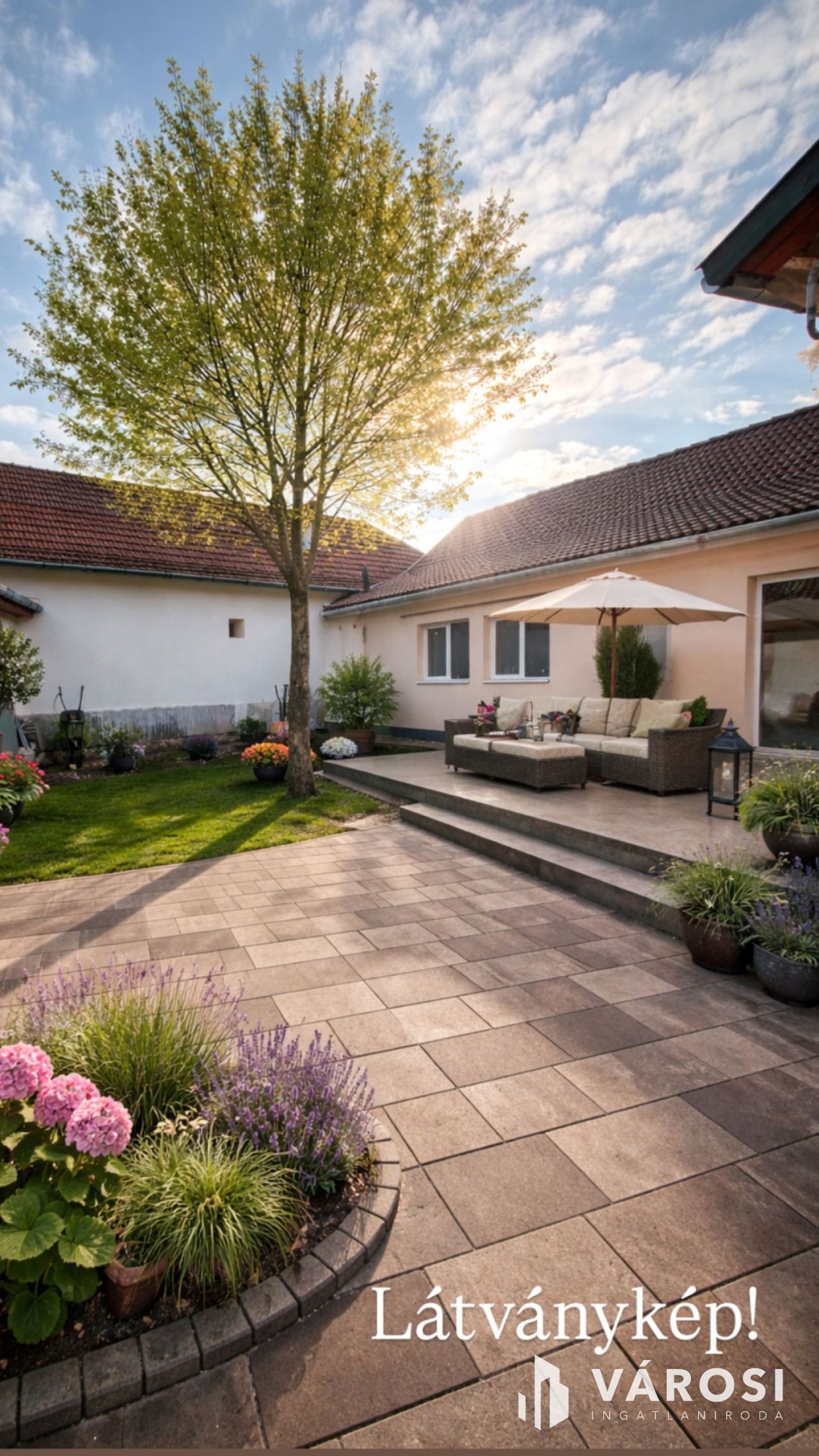 A teraszon és a kisebb méretű kertben élvezhetjük a saját, intim tér által adott lehetőségeket és a békés környezetet.