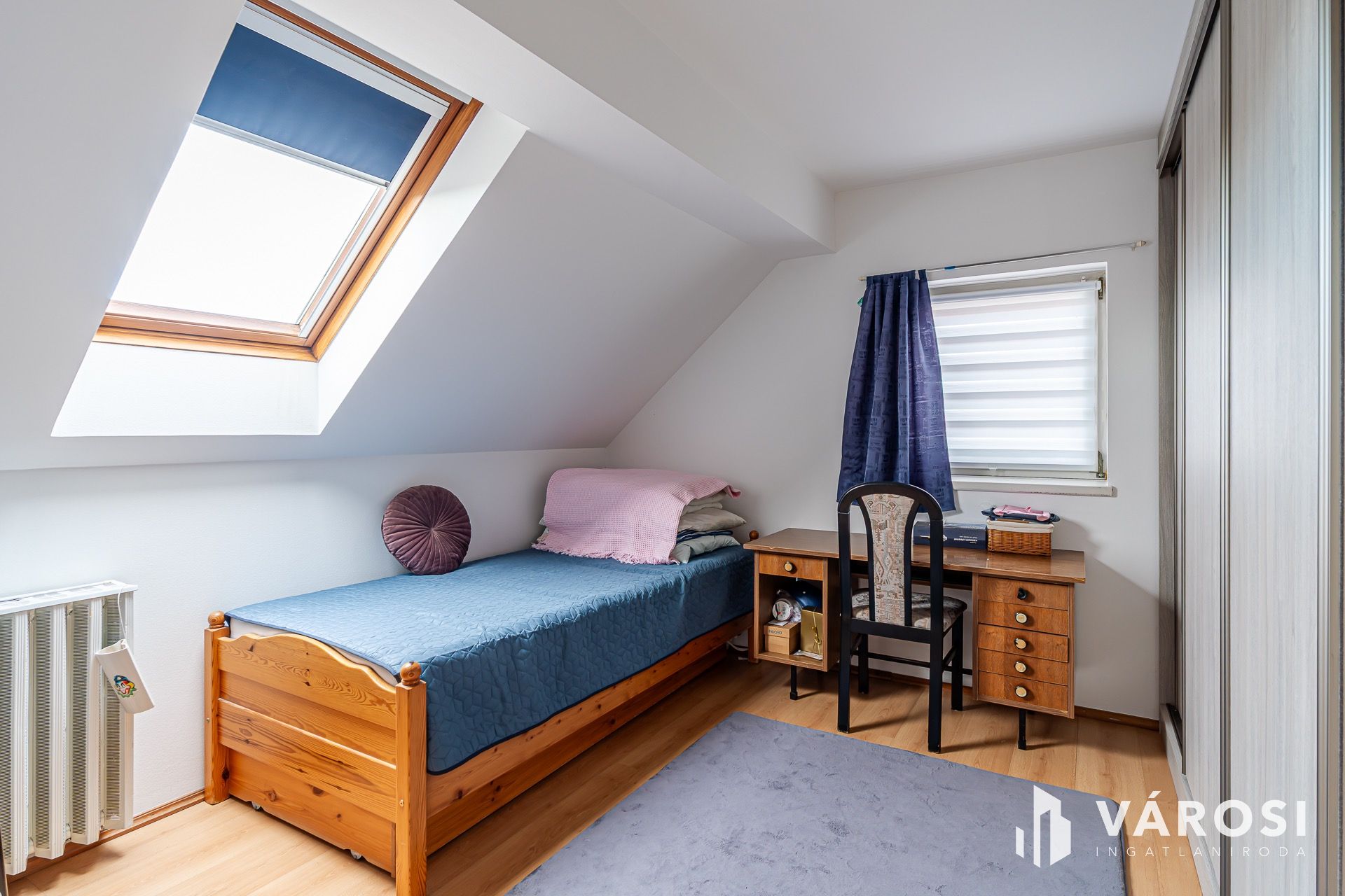 ​Tetőtér: 3 különálló hálószoba, fa Velux ablakokkal. A galérián beépített gardróbszekrény és egy plusz mosdó növeli a komfortot.