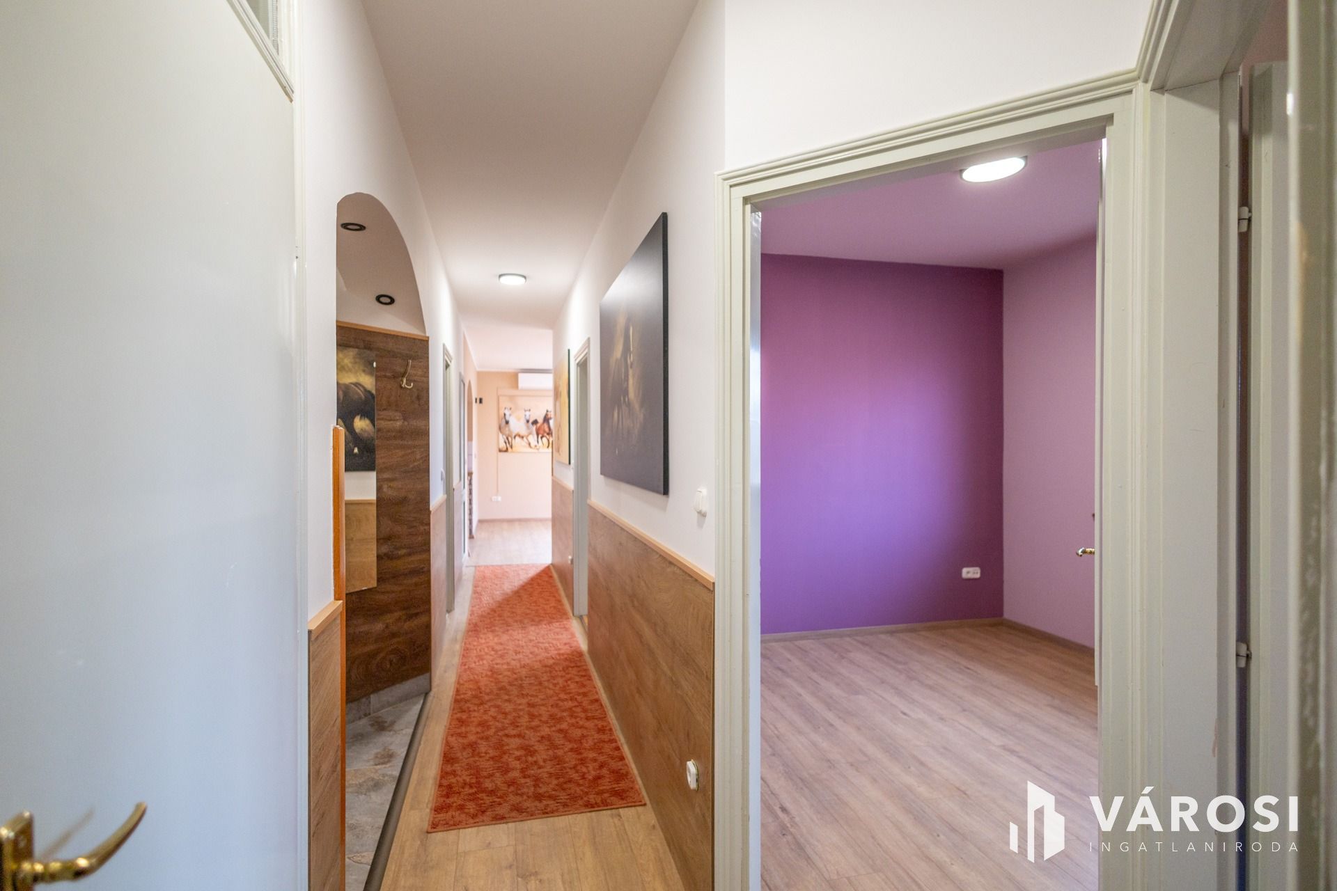 -Szobák és nappali laminált padlóval, egyéb helyiségek járólappal, mindenhol új padlóburkolat