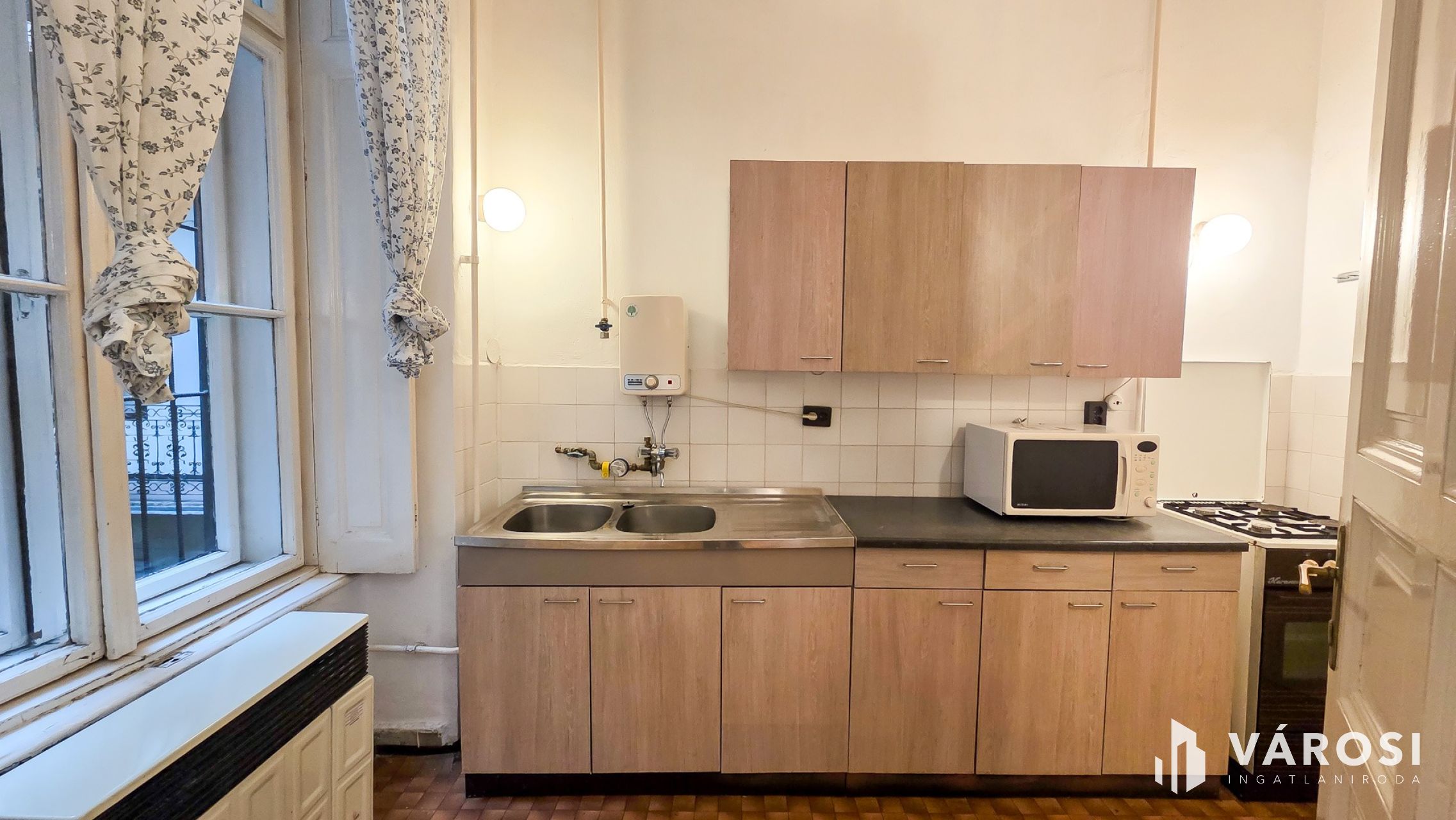 Kiadó a IX. kerületben, a Ferenc körúton egy első emeleti, nappali + hálószobás 50 m2-es lakás.
