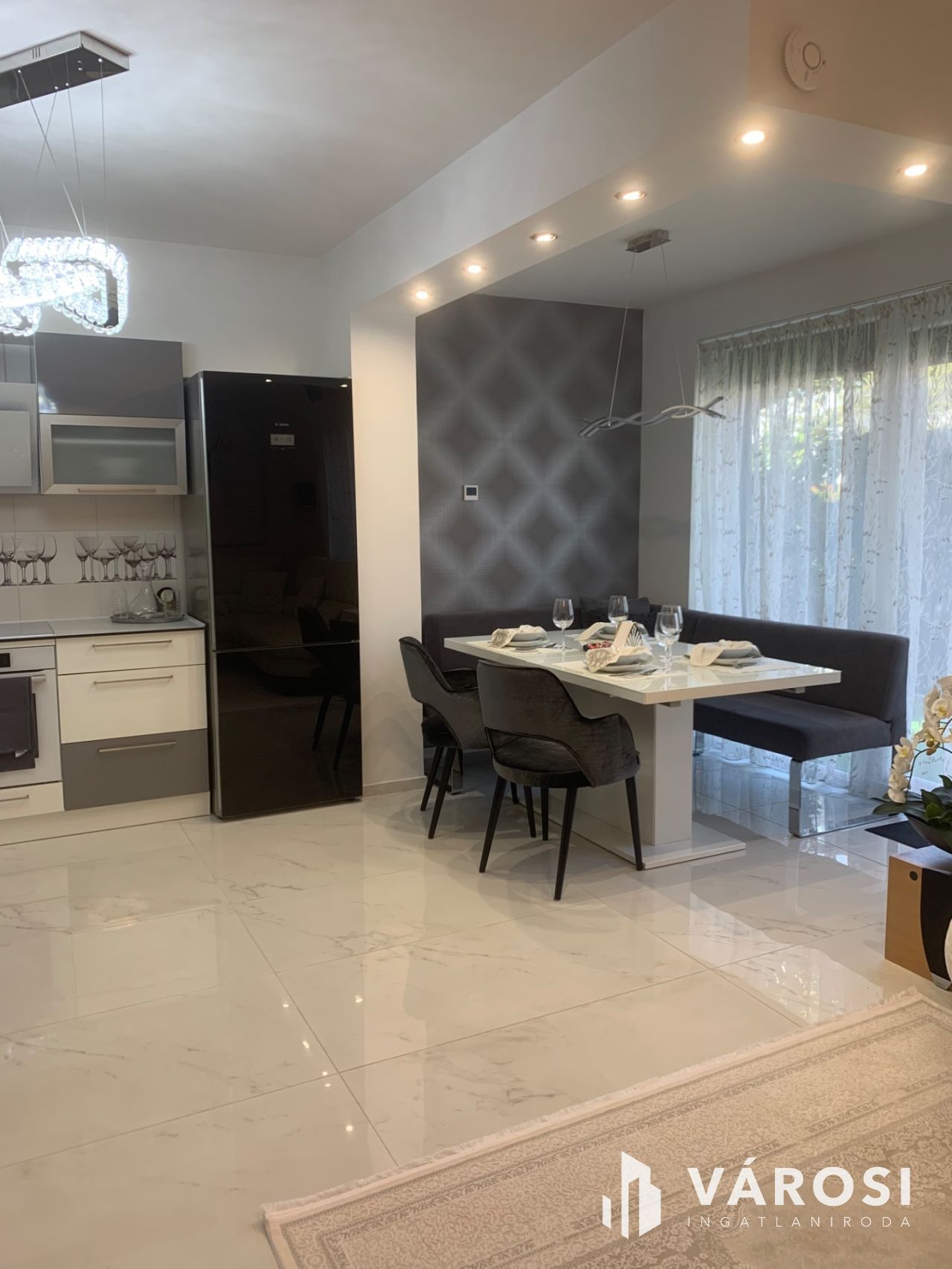 Konyha: Teljes körűen beépített, csúcskategóriás Bosch gépekkel felszerelt .