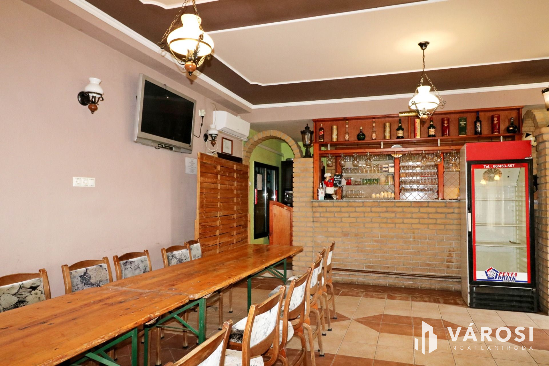 2004-ben felújított és teljesen berendezett, meleg konyhás, családias étterem eladó, amely egy 2243 nm-es teleken helyezkedik el.