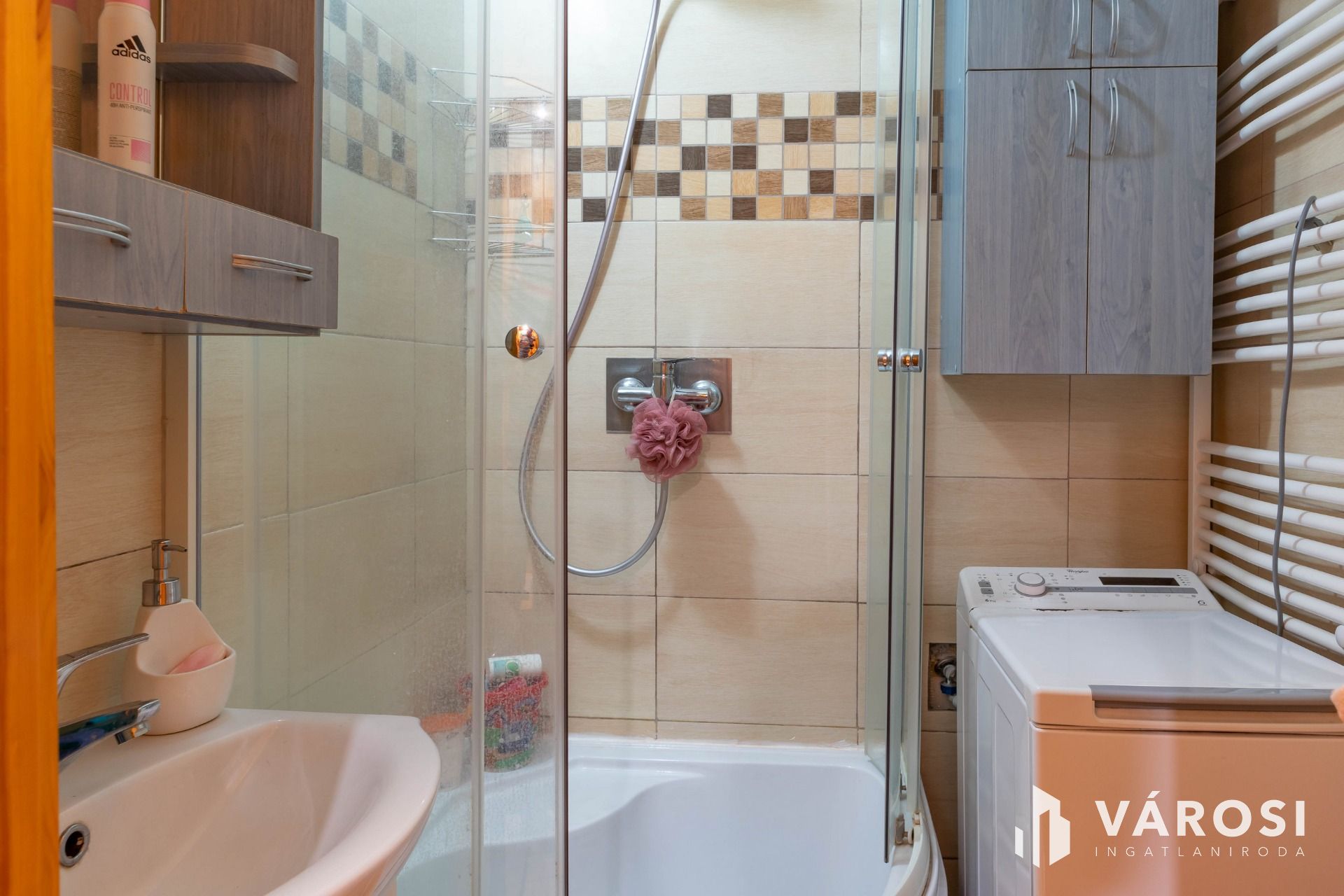 A lakás szobái laminált parkettával borítottak, míg a többi helyiség minőségi hidegburkolattal ellátott. Fűtéséről és meleg víz ellátásáról kombi gázkazán gondoskodik radiátoros hőleadással. Emellett két darab 3,5 kW teljesítményű hűtő-fűtő klímaberendezés is biztosítja a kényelmes hőmérsékletet az év minden szakában.