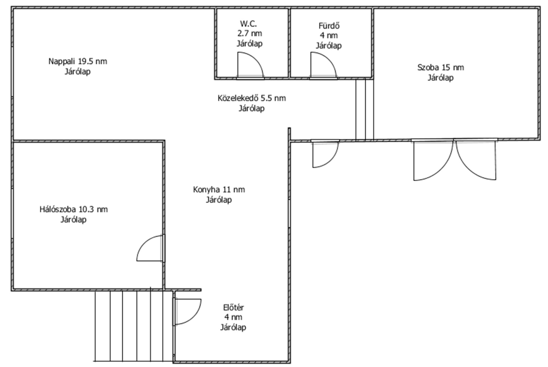 Helyiségei: előszoba, amerikai konyhás nappali, 2 hálószoba az egyik teraszkapcsolatos, fürdőszoba, W.C..